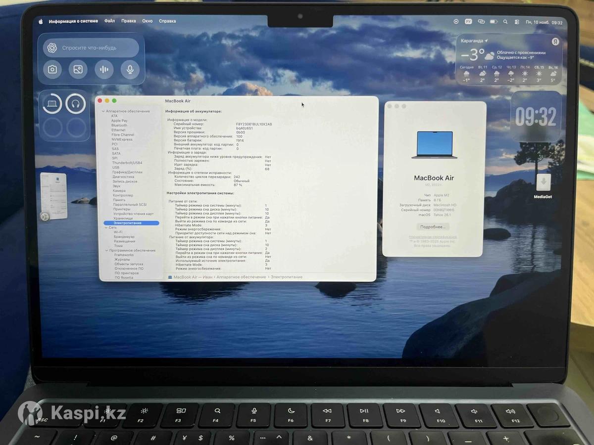 Продаю свой MacBook Air M2 в шикарном цвете Midnight (темно-синий) — выглядит просто космос Использовался аккуратно, в идеальном состоянии — как новый! Характеристики: •Процессор: Apple M2 (8-ядерный CPU / 8-ядерный GPU) •Оперативная память: 8 ГБ •Накопитель: 256 ГБ SSD •Экран: 13.6” Liquid Retina — яркий, четкий, нереально красивый •Цвет: Midnight (темно-синий, переливается на свету) •macOS свежая, работает мгновенно Состояние: •Без царапин, без сколов, без ремонта •Батарея живая, мало циклов •Всегда носился в чехле •Полный комплект: оригинальная коробка, зарядка, кабель