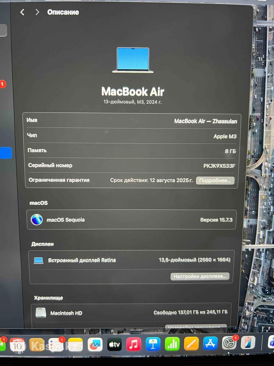 Macbook Air 13 M3 2024. 8/256 гб. 96% аккум. Состояние отличное. Один владелец. Покупали в Apple Store у официалов. Коробка, зарядка все имеется.
