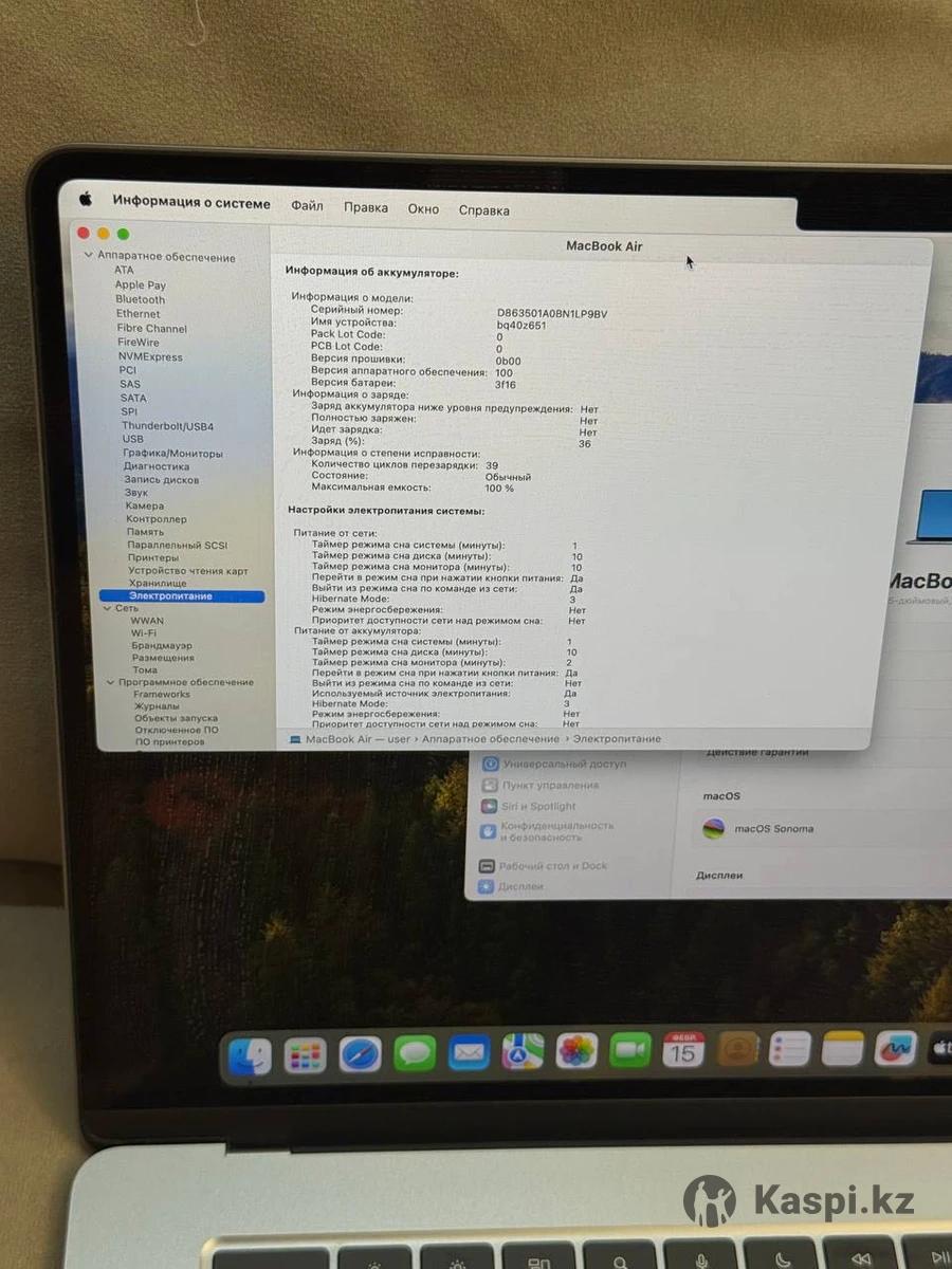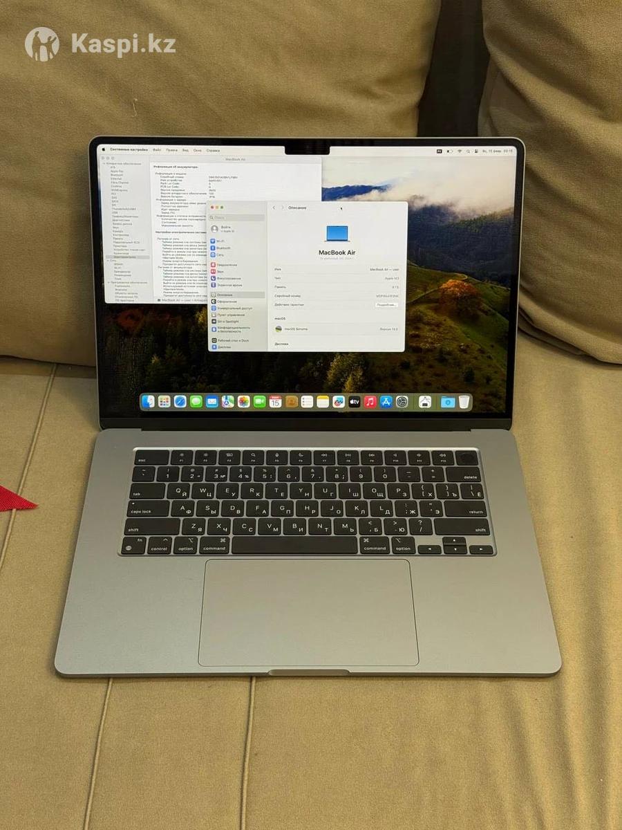 MacBook Air 15 M3 - ИДЕАЛ! •EAC Sulpak •Русская расскладка •8/256гб •100% АКБ •39 цикла перезаряда •В комплекте зарядка
