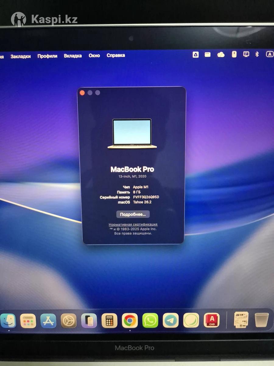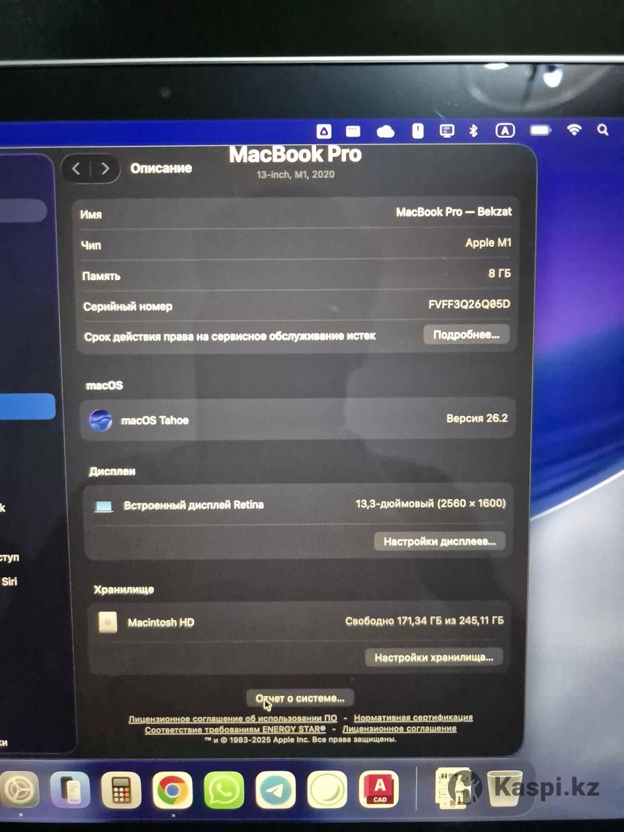 MacBook Pro M1, ОЗУ — 8 ГБ, память — 256 ГБ. Циклы перезарядки — 203. На корпусе снаружи есть очень маленькие царапинки. Вооруженным глазом их вообще не видно. На экране есть чуть мелкие пятна, думаю, из-за клавиатуры. На включенном экране их вообще не заметно. Идеальный ноут для студентов и офисной работы. Процессор M1 все еще актуален и, думаю, прослужит еще 3–4 года смело. В комплекте зарядка. В подарок дам сумку и переходник type-c на type-a, пленка на русскую раскладку. Напишите в чат. Торг минимальный есть