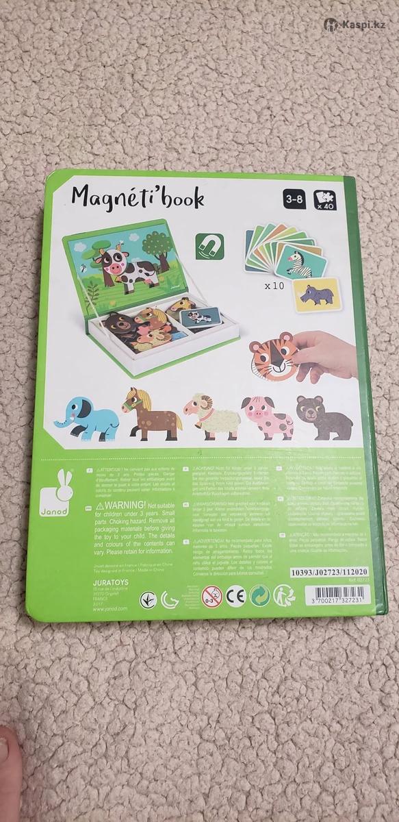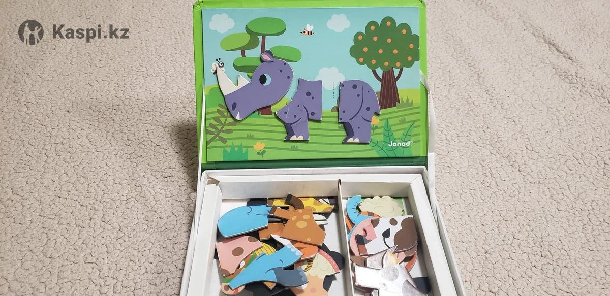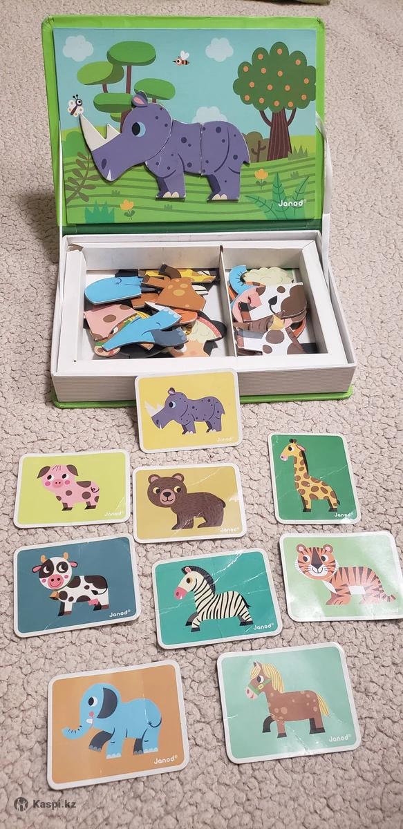 Увлекательная магнитная игра «Зверюшки» от французского бренда Janod. Она состоит из 30 магнитных элементов и 10 карточек. Открыв «книгу», необходимо сложить с деталей животное, изображенной на карточке-задании. Также ребенок может создавать фантастических животных из разных элементов. Таким образом будет развиваться фантазия, мелкая моторика, мышление и воображение. Во время развивающих игр дети развивают не только память, но и внимание, мышление, воображение, речь и эмоции. Мы очень любили эту игру, наш малыш в год научился сопоставлять нужные фрагменты животных. Набор выполнен в виде прочной яркой книги, что очень удобно и привлекательно для ребенка. Набор в полном комплекте. Отдам за 3000тг, новый стоит более 10000. Смотрите другие мои объявления. Можно писать на .