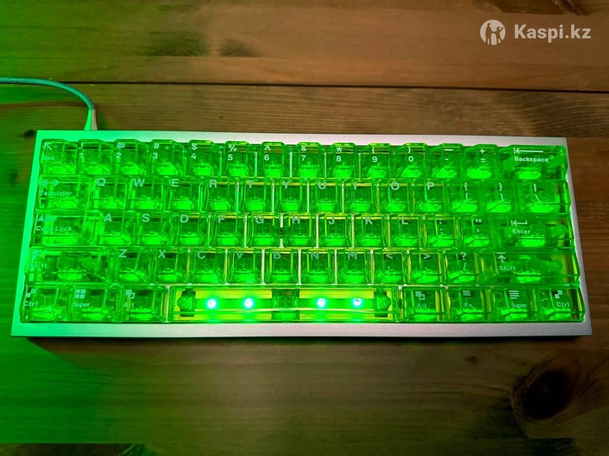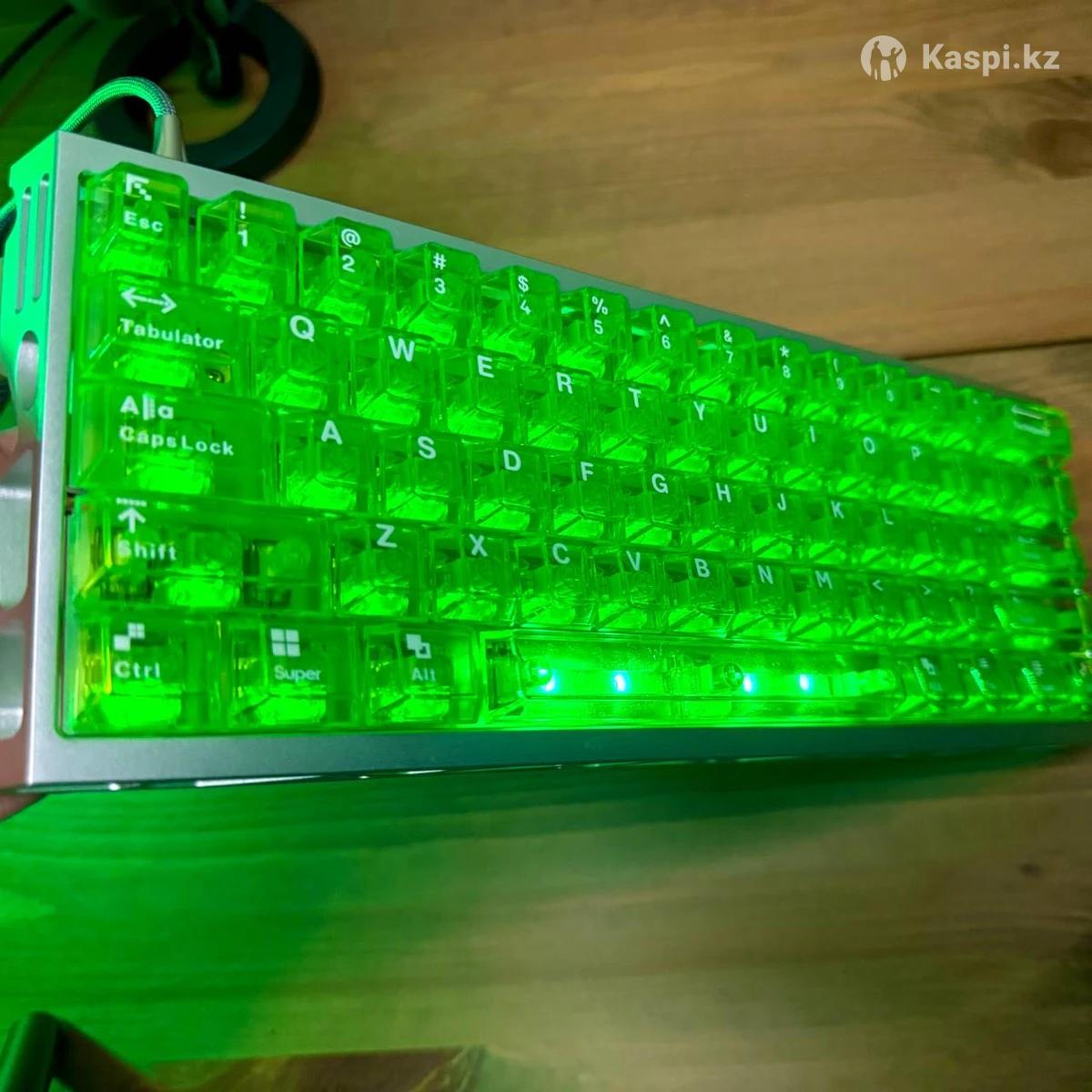 Кастомная магнитная клавиатура • Плата: Gateron T60 Pro влагозащищенная и пылезащищенная, надежная в любых условиях. • Свитчи: Gateron Green Dragon плавный ход, четкий отклик и приятный звук при нажатии. • Корпус: прочный алюминиевый кейс, обеспечивает вес, стабильность и ощущение монолитности. • Кейкапы: прозрачные зеленые кейкапы, красиво подсвечиваются и придают клавиатуре уникальный стиль. • Шумоизоляция: установлена, чтобы убрать лишние вибрации и сделать звук более мягким и приятным.