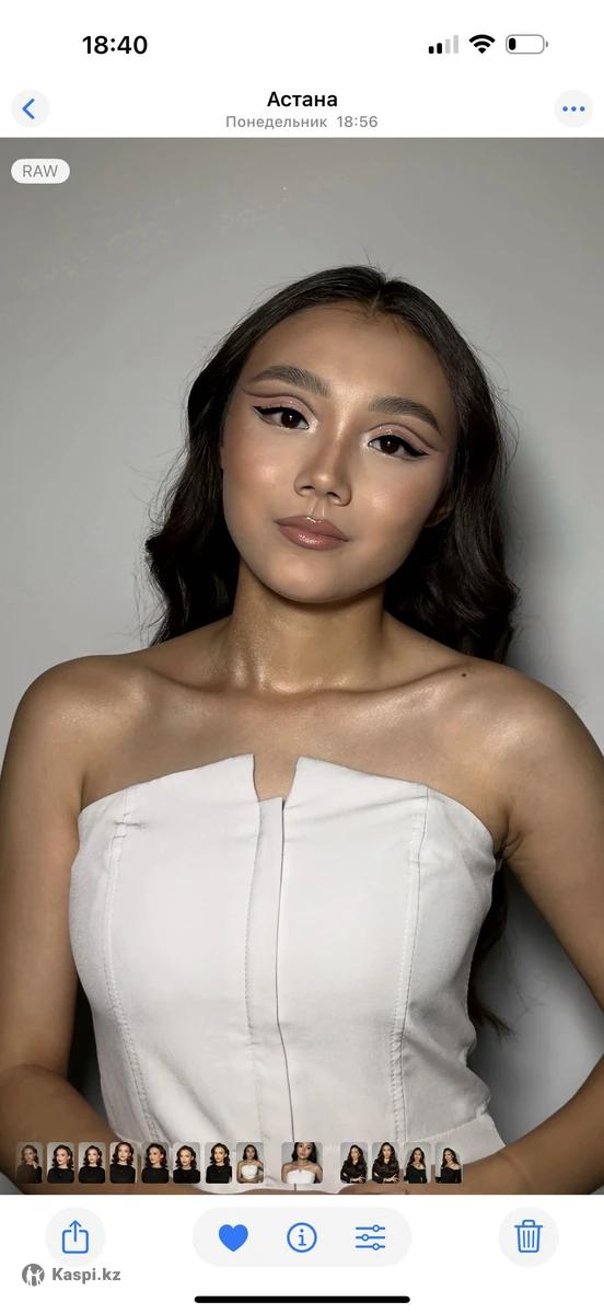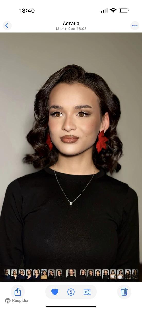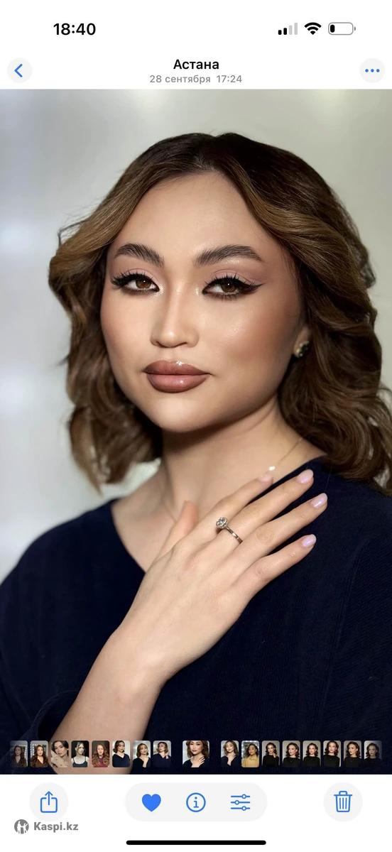 Акция на полный образ! Помогу вам собраться на любое мероприятие. Создаю стильные и естественные образы. В своей работе использую косметику и средства для укладки профессиональных марок и качества люкс Акция ! Макияж + прическа/локоны- 14 000 тг. Для записи пишите Принимаю в студии -Майлина 37