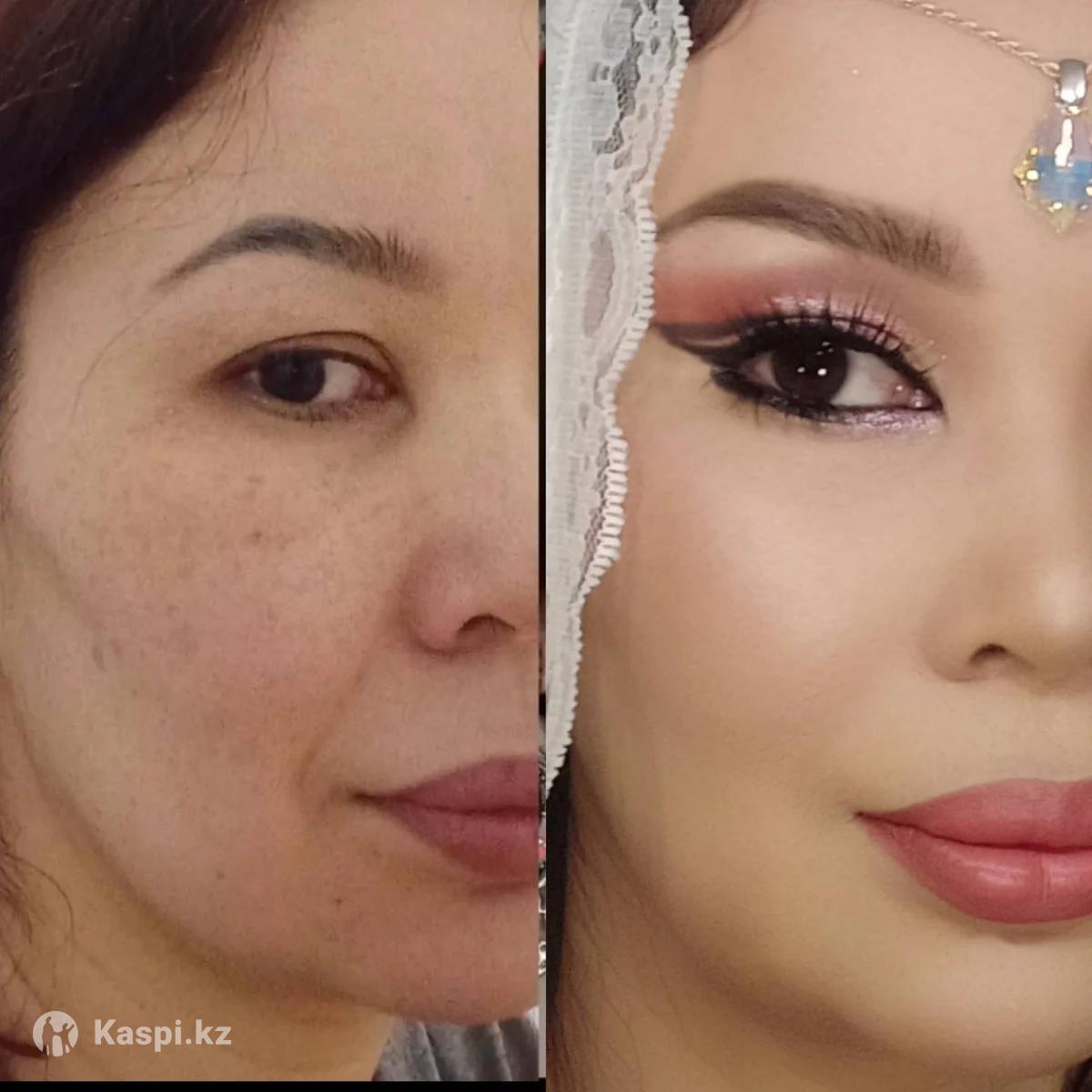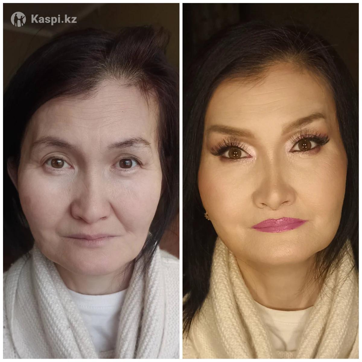 Профессиональный, стойкий макияж на профессиональной косметике. Художественное образование и стаж более 12 лет . Любой вид макияжа по 5000 , с ресницами 6000, Свадебный 7000. Естественный тон лица , не перегруженный , не как маска . Принимаю в районе Зеленого Базара , на Валиханова 24 . На выезд - та же цена макияжа + Яндекс такси туда и обратно. Обучение "Макияж для себя" стоит 5000 одно занятие . По желанию можно пройти все занятия или выборочно одно, два .