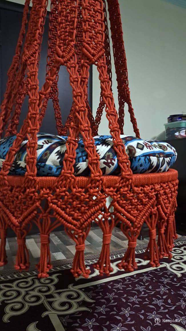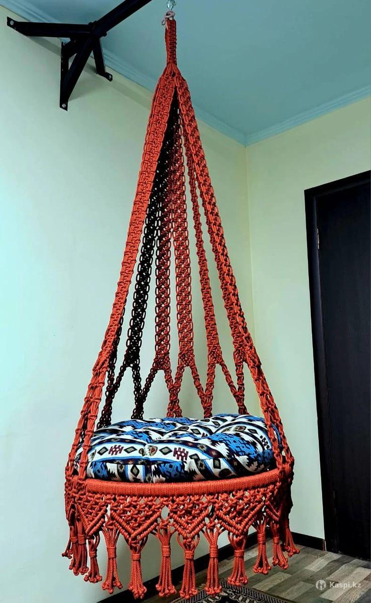 Подвесная качеля макраме для детей до 14 -16 лет– это стильный и уютный элемент интерьера, выполненный в технике узелкового плетения. Оно идеально подходит для отдыха и создания комфортной атмосферы в доме, на террасе или в саду. Основные характеристики: Материал – прочные гамаковые нити, обеспечивающие надежность и долговечность. Каркас – металлический, придающий креслу устойчивость. Крепление – может фиксироваться к потолку, перекладине или специальной стойке. Дизайн – ажурное плетение, бахрома, различные узоры, придающие креслу декоративный вид. Комфорт – мягкое сиденье, возможность дополнительно использовать подушки. Преимущества: Экологичность – натуральные материалы безопасны для здоровья. Эстетика – стильный бохо-дизайн вписывается в любой интерьер. Многофункциональность – подходит для дома, балкона, дачи, беседки. Простота установки – не требует сложного монтажа. Такое кресло станет не только удобным местом для отдыха, но и эффектным украшением вашего пространства