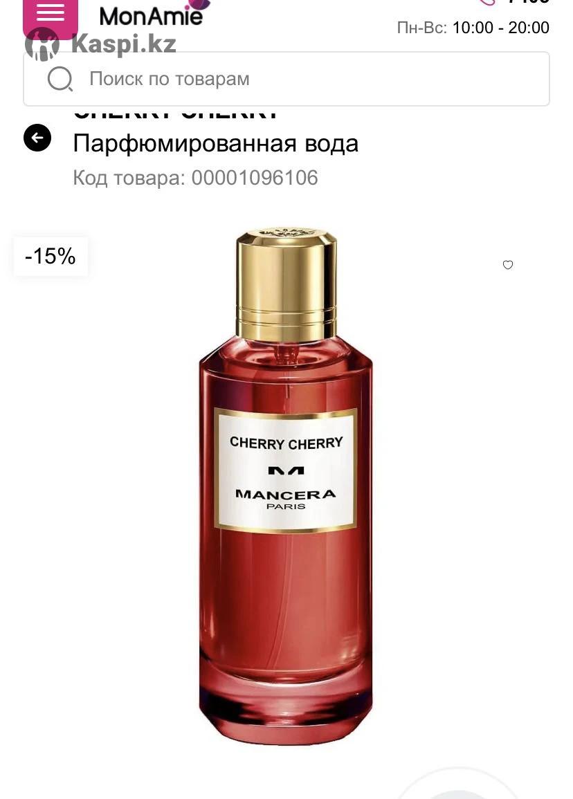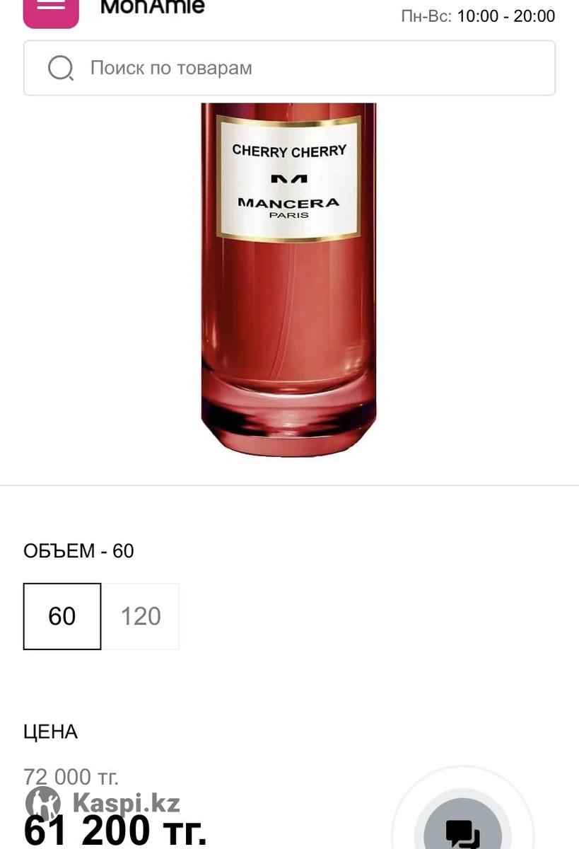 Mancera Cherry Cherry 60 мл Куплен неделю назад в Mon Amie. 5–6 распылений, состояние нового. Оригинал, коробка, пакет вместе. Не подошел, возможен обмен
