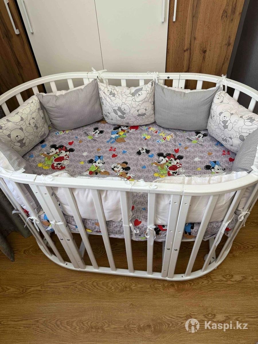 Продаю стильный белый манеж-кроватка овальной формы. Настоящий уютный островок для сна, игр и первых открытий вашего малыша! 💡 Главные плюсы: • Универсальная овальная форма – безопасно, мягко и красиво • Надежная деревянная конструкция • В комплекте мягкие бортики-подушки по периметру, чтобы малыш не ударялся • Удобный матрас с яркой наволочкой в дизайне Mickey & Minnie – праздник каждый день! 🎈 • Нейтральные и милые оттенки впишутся в любой интерьер • Все чистое, аккуратное