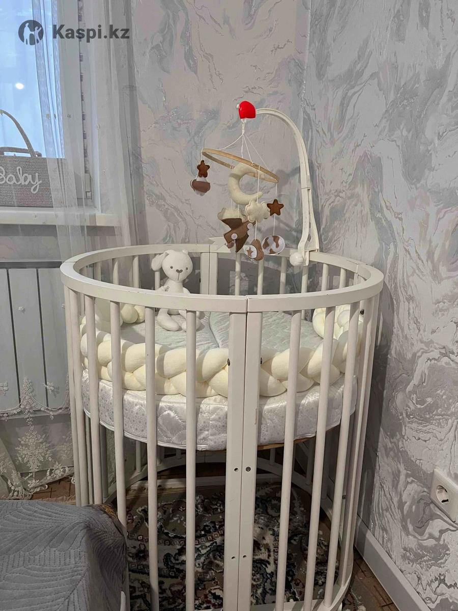 Есть дополнительная решетка и матрас увеличивается в овальную форму. Вместе с манежем отдам бортик что на фото, подвесную игрушку и лежанку