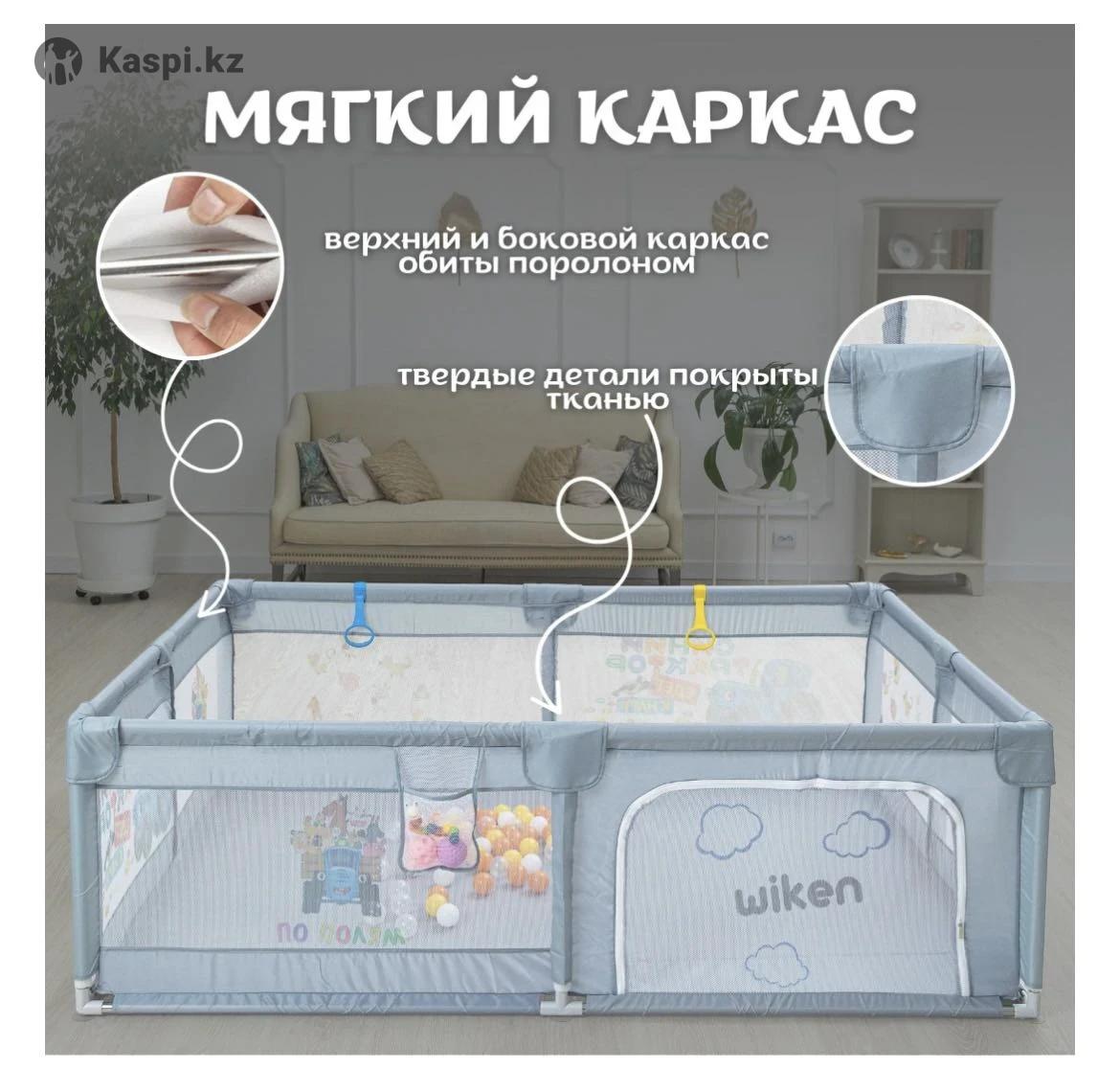Манеж размер 200 на 180 см, с присосками, мягким каркасом и дверцей на молнии.