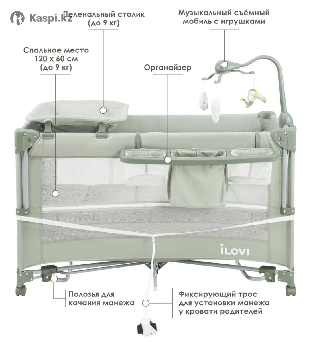 Манеж новое, так как не пользовались. В упаковке. Можно на подарок 🎁 Манеж iLovi Sleepy - настоящий оперативный центр для путешествий со множеством удобств и аксессуаров. Систему быстрого складывания и раскладывания. По бокам сквозные сетчатые стенки, боковой лаз на молнии. Органайзер для самого необходимого. Характеристики: Для детей с рождения до примерно 36 месяцев. Максимальный вес на пеленальный столик - 9 кг. Максимальный вес на верхнее спальное место - 9 кг. Максимальный вес для игрового манежа - 15 кг. Система быстрого раскладывания и складывания 4 съемных колеса. Колеса с возможностью блокировки. Полозья для качания. Дно устанавливается на двух уровнях высоты. Опускаемая передняя стенка. Трос для фиксирования у кровати родителей. Сетчатые стенки для лучшей вентиляции. Боковой лаз на молнии. Пеленальный столик. Музыкальный съемный. Мобиль с игрушками. Органайзер для всего необходимого. Сумка для трауспортировки. Размеры: В разложенном виде (ДхШхВ) - 126 х 64 х 78-82 см (на колесах/на полозьях). В сложенном виде - 81 х 28 х 28 см. Матрас -120 х 60 см. Пеленальный столик - 64 х 45,5 см. Вес: Без упаковки - 15.3 кг. В упаковке - 16.1 кг.