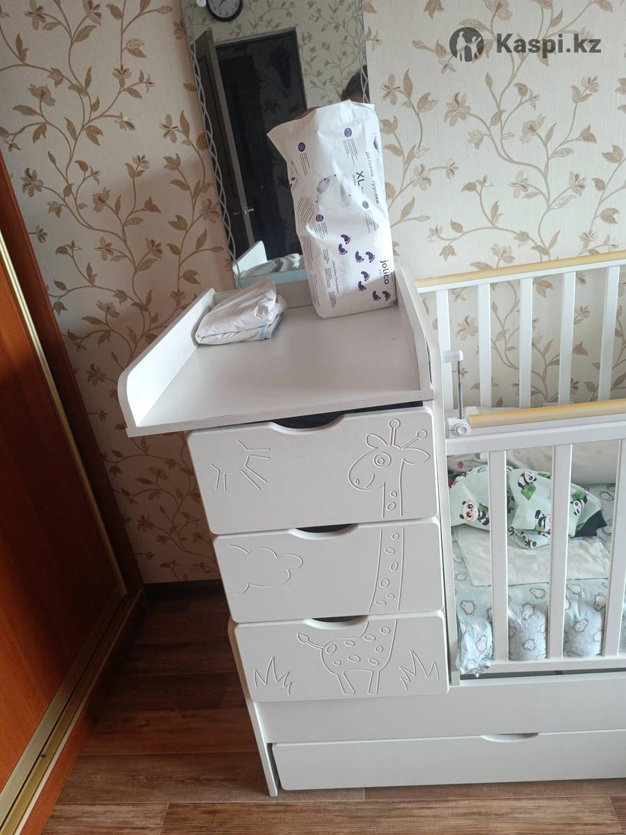 Продам кровать трансформер (Съемный манеж, тумба с ящиками и пеленальным столиком, нижний ящик и полноценная кровать) . Для манежа имеется матрас в комплекте. Пользовались аккуратно. Размер общий : 17565, размер манежа 12265.