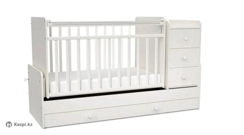 Кроватка трансформер с 0-10 лет Tomix Freddo Белый Кроватка для новорожденных растет вместе с ребенком. С рождения- кроватка-манеж 120х60 см с поперечным маятником для укачивания, пеленальным комодом с 3 ящиками и большим ящиком под кроватью. Кроватка с силиконовыми накладками-грызунками защитит десна малыша. Передняя стенка кроватки опускается при помощи кнопок для удобного укладывания малыша. Днище регулируется по высоте в 3 уровня. В дальнейшем кроватка-манеж убирается и остается кровать детская 170х60см с ящиком и отдельно стоящая тумба-комод Материал: ЛДСП+ массив березы Маятник поперечный