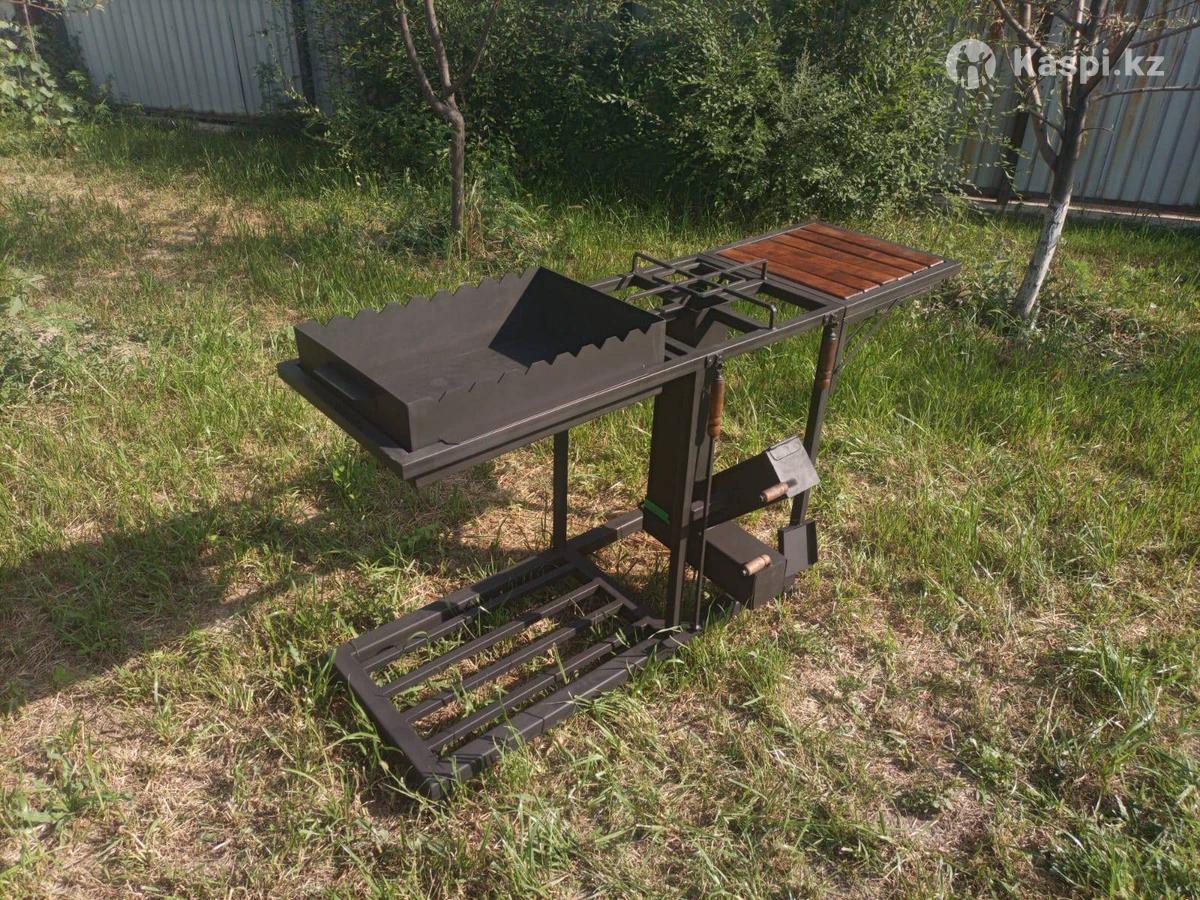 Комплектация: мангал на 9 шампуров, печь ракета, кочерга, совок!!! Имеет откидную столешницу!!! Полностью окрашен термостойкой краской Изготовление под заказ!!!