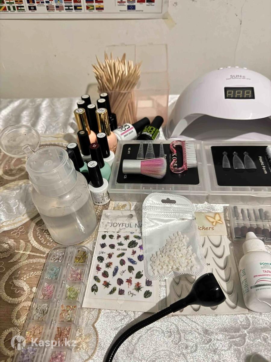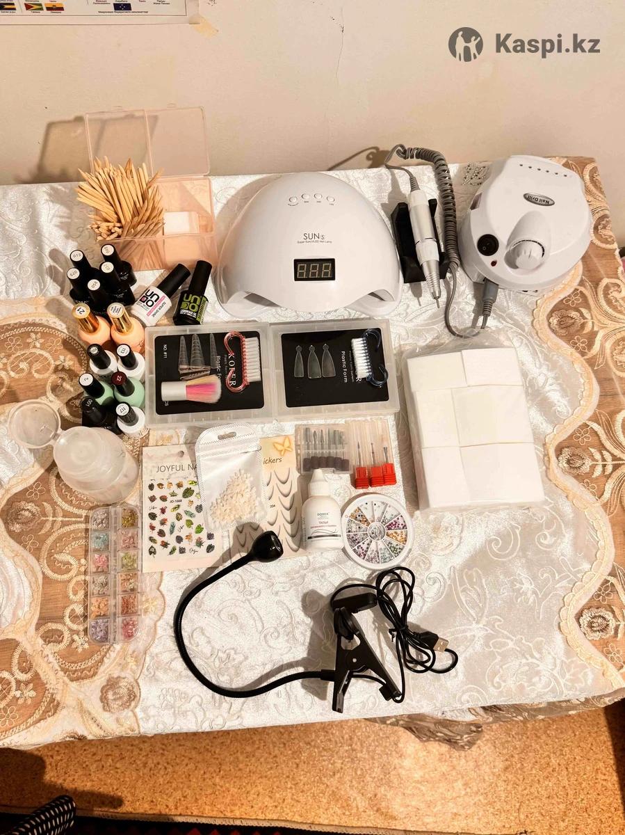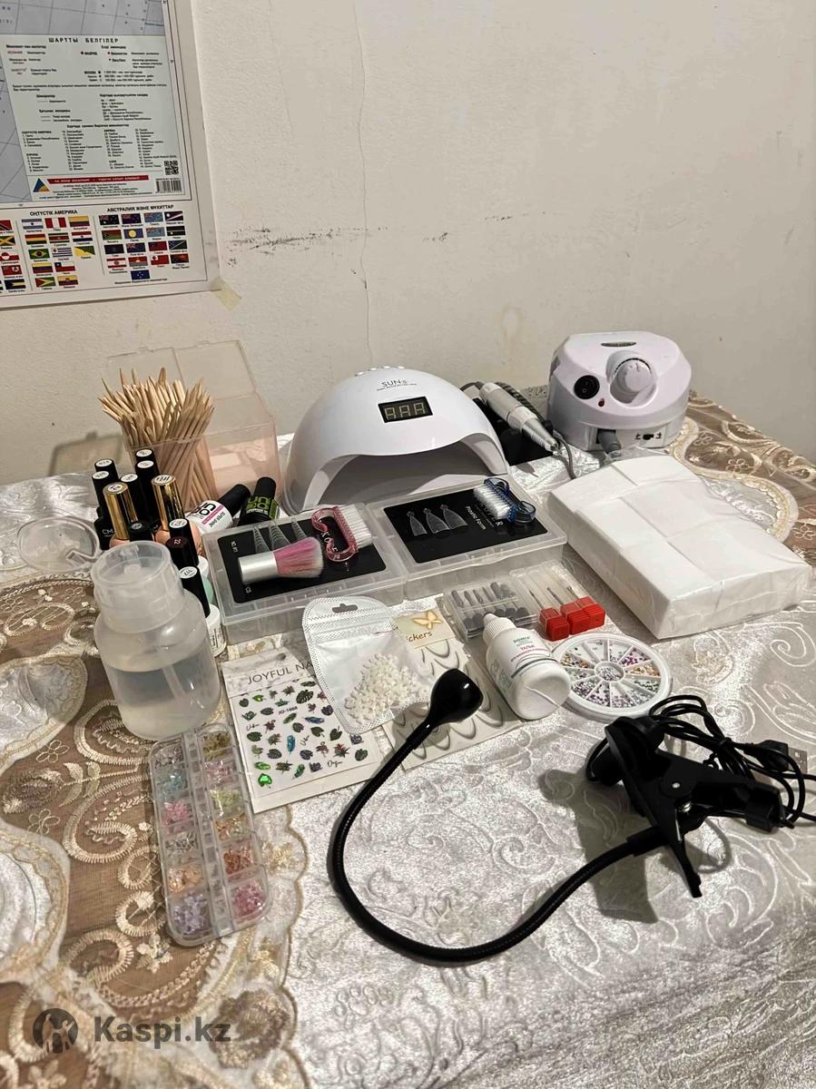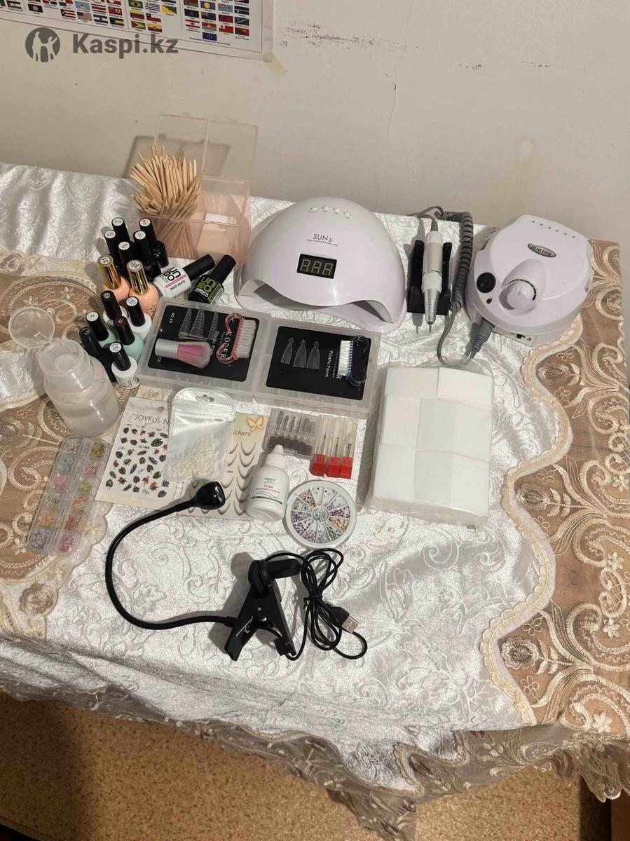 Маникюрный набор. Ішінде лампа, апарат, гель база лактар бар. Қолданылған, ашылған заттар. Новый емес.