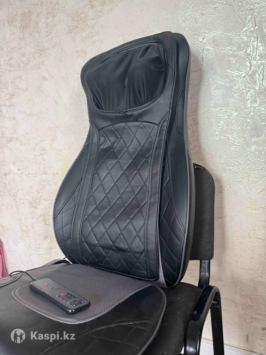 Черная массажная накидка на кресло. Изготовлена из качественной экокожи с декоративной стежкой в ромбовидном стиле. Накидка плотно прилегает к спинке кресла, поддерживает спину, поясницу и шею, повторяя форму тела. В области шеи предусмотрена мягкая поддержка для дополнительного комфорта. Нижняя часть предназначена для массажа сидячей зоны. Управление осуществляется с помощью пульта, с помощью которого можно выбрать режим массажа, интенсивность и функцию подогрева. Подходит для использования дома и в офисе, помогает снять усталость и расслабить мышцы Массаж плеч, шеи, поясница, спина. Подогрев, автоотключение. Почти новое.