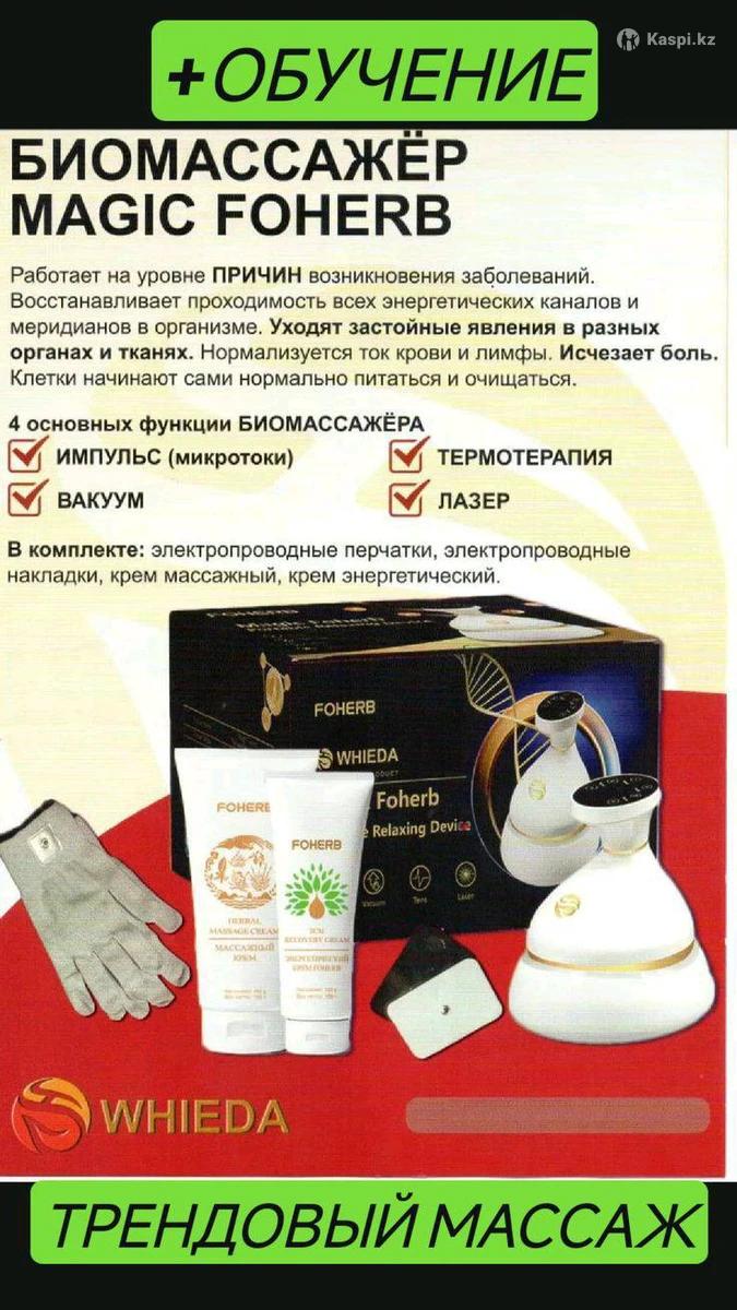 Многофункциональный массажный аппарат БЭМ FOHOW 5-го поколения — современное устройство для домашнего использования и оздоровительных процедур. Аппарат объединяет 5 функций в одном корпусе: – Импульсный массаж (микротоки) – Вакуумный массаж – Гуаша массаж – Термический прогрев – Лазерный прогрев Используется для общего расслабления, снятия мышечного напряжения, улучшения кровообращения и поддержания комфортного физического состояния. Подходит для индивидуального и семейного применения. Компактный, удобный в использовании, не требует специальных медицинских навыков. В комплект входит: – Массажный аппарат БЭМ FOHOW – Обучение по применению – Сертификат после обучения – Подарки от продавца Стоимость: 344 000 тенге. Доставка по всему Казахстану. Товар новый, оригинальный. Перед использованием рекомендуется ознакомиться с инструкцией.