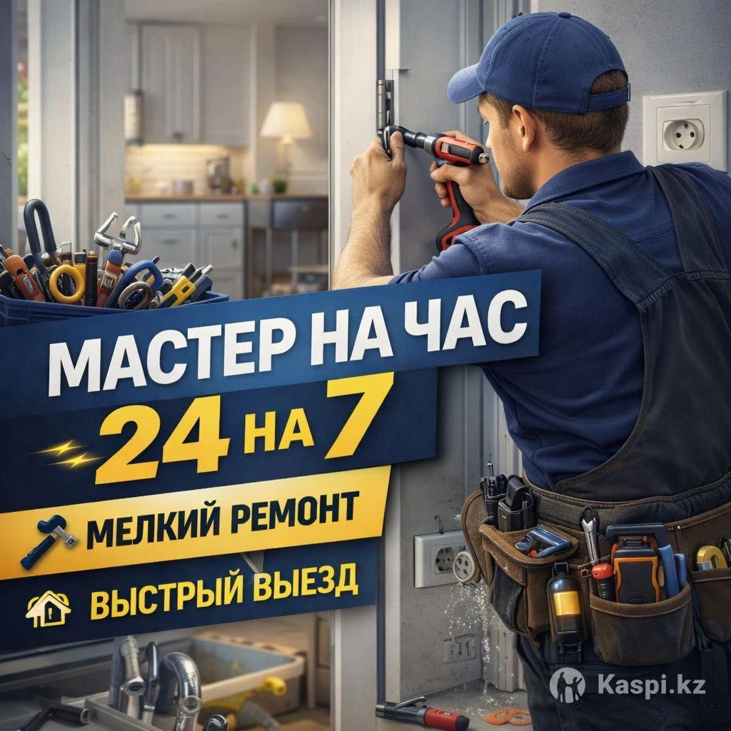 Мастер на час 24/7. Выезд на дом Оказываю услуги мастера на час в квартирах, домах и коммерческих помещениях. Виды работ: – мелкий бытовой ремонт – установка и замена розеток, выключателей, светильников – навеска полок, картин, зеркал, карнизов – сборка и мелкий ремонт мебели – регулировка дверей, замков, петель – устранение мелких неисправностей по дому Работаю аккуратно, с профессиональным инструментом. Выезд в удобное для вас время. Условия выезда: Если при выезде проблема была определена, объём работ установлен или выполнена частичная работа, но по инициативе заказчика дальнейшие работы не выполняются — выезд и консультация подлежат обязательной оплате. Выезд в пригород — по предварительной договорённости и оплачивается отдельно. Цена договорная, зависит от объёма работ. Звоните или пишите — обсудим задачу. ⸻ Тақырып: Мастер на сағат 24/7. Үйге келемін Сипаттама: Үйге, пәтерге және коммерциялық нысандарға «мастер на сағат» қызметін көрсетемін. Қызмет түрлері: – ұсақ тұрмыстық жөндеу – розетка, қосқыш, жарық шамдарын орнату – сөре, айна, карниз ілу – жиһаз жинау және ұсақ жөндеу – есік, құлып, ілмек (петля) реттеу – үйдегі ұсақ ақауларды жою Құралым бар, таза әрі ұқыпты жұмыс істеймін. Келісілген уақытта келемін. Шығу шарттары: Егер келген кезде мәселе анықталып немесе ішінара жұмыс жасалып, бірақ тапсырыс беруші жұмысты жалғастырмаса — шығу ақысы төленеді. Қала сыртында жұмыс алдын ала келісіммен, жол ақысы бөлек. Бағасы келісім бойынша. Қоңырау шалыңыз немесе жазыңыз.