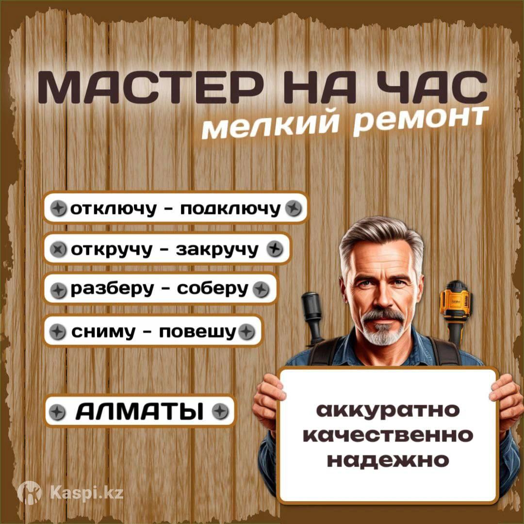 Мастер на все руки - ваш личный супергерой! Надоели мелкие проблемы по дому и бытовой дискомфорт? Я ваш мастер на час! Помогу справиться с любыми задачами, большими и маленькими: -Потекла труба или кран? - починю -Сломался стул? - склею -Повесить полку или гардину? - сделаю -Заклинил замок? - отремонтирую -Собрать, разобрать мебель? - без проблем Гарантирую: -Профессионализм -Вежливость и тактичность -Качественное и аккуратное выполнение работ -Доступные цены Свяжитесь со мной, и я спасу ваш день! По всем вопросам прошу звонить или писать на . Сохраните номер пригодится 100%!