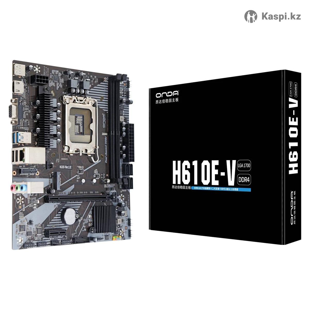 ● Производитель Onda ● Код товара H610E-V2.01 ● Сокет LGA1700 ● Чипсет Intel H610 ● Фoрм-фактор Micro ATX ● Количество слотов памяти 2 x DDR4 ● Количество разъемов SATA 3 4 ● Количество слотов PCI Express 1/x16 ● Количество разъемов USB 2 x USB 3.2 / 4 x USB 2.0 ● Видео выходы 1 x HDMI / 1 x VGA ● Разъемы для SSD 1 x M.2 ● Поддержка процессоров 12/13/14