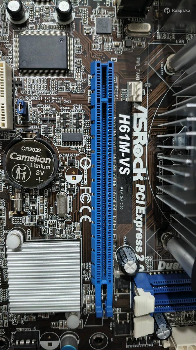 Продам комплект. Материнская плата плюс процессор, кулер в отличном состоянии. Основные характеристики: Процессор intel Core i3 3210 Материнская плата: ASRock Модель: H61M-VS R2.0 Сокет: 1155 Чипсет: H61 Кулер: Deepcool