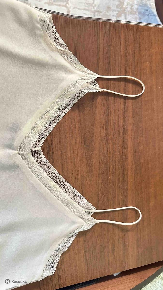 Майка от Zara на Тонких бретельках на горловине и по бокам имеются кружевные вставки цвет молочный Ближе к белому