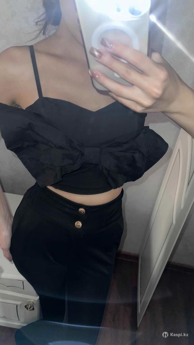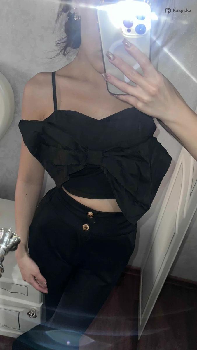 Майка с большим бантом,сзади замок. Худеть в талии,так как обтягивает