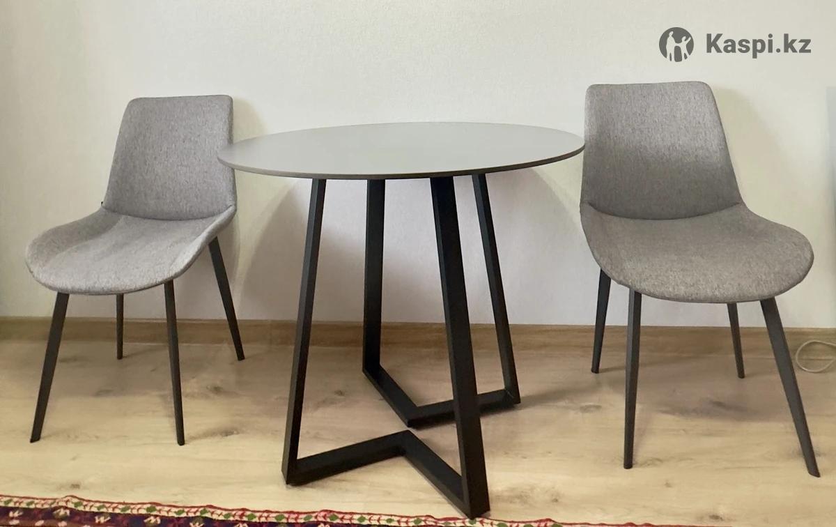 Стол круглый 9090 металл, стекло; Стулья 2 шт, весь набор 45.000. Все в отличном состоянии б/у месяц!!! ТОРГ.