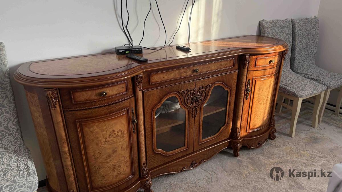 Мебель для гостиной: стол, стулья, подставка, сервант. В комплекте 16 стульев. Вся мебель в отличном состоянии, аккуратно использовалась, без повреждений, чистая и ухоженная. Идеально подойдёт для просторной гостиной или зала, а также для гостей приёмаи семейных мероприятий.