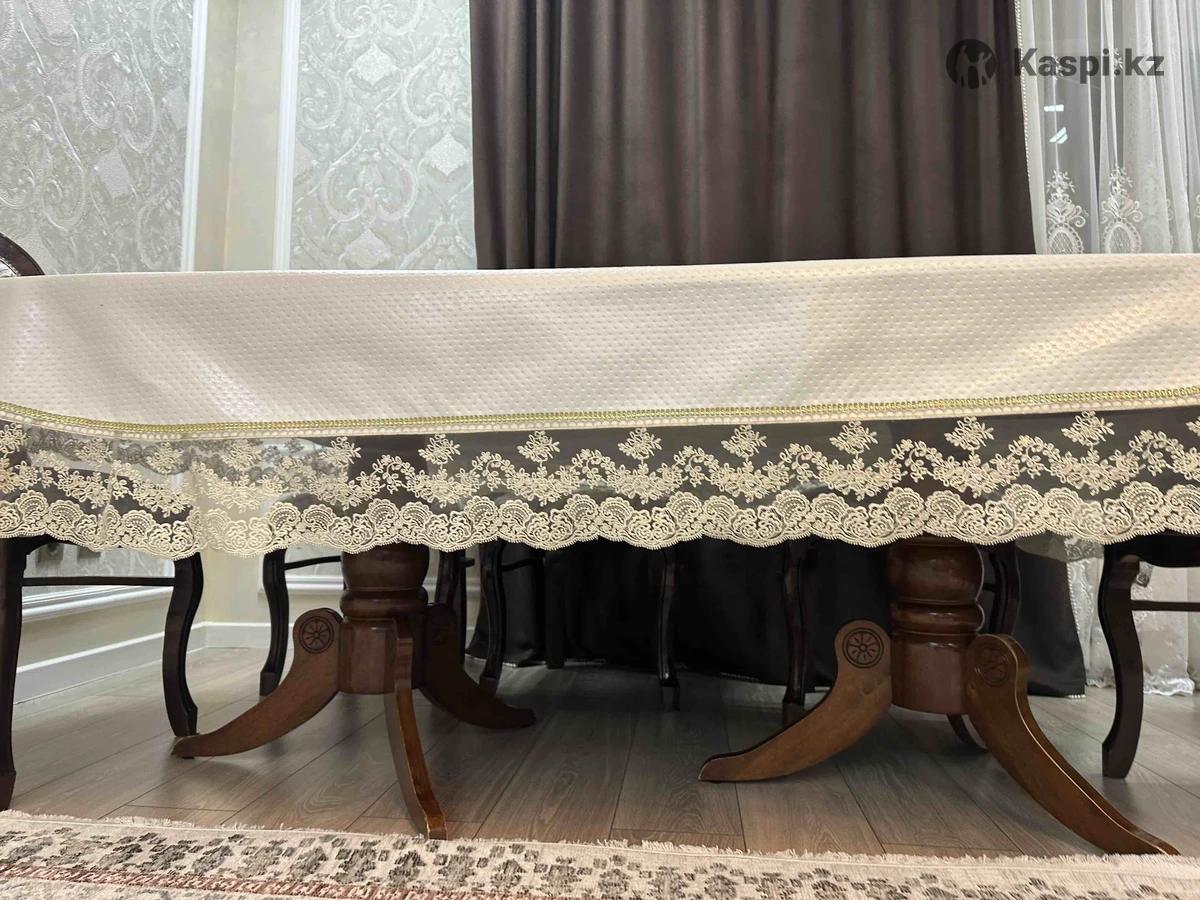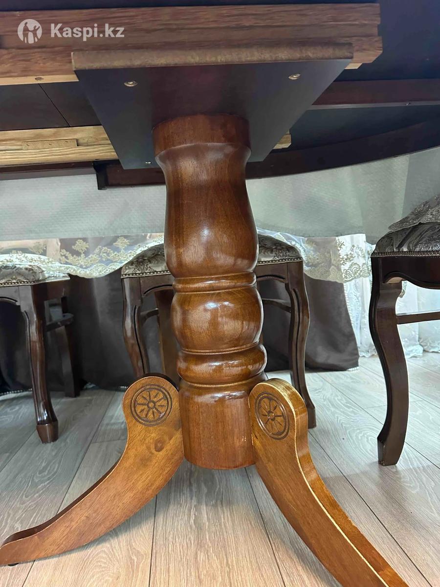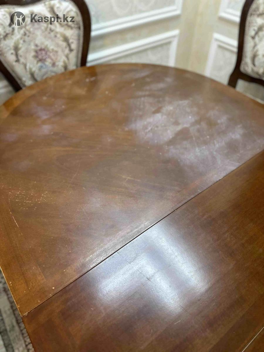 Стол и стулья для гостиной. Деревянный стол и стулья идут в комплекте(8шт). Столешница немного выцвела, но это не критично, под скатертью . В раздвижном виде 240х110, в складном 180см. Возможен торг