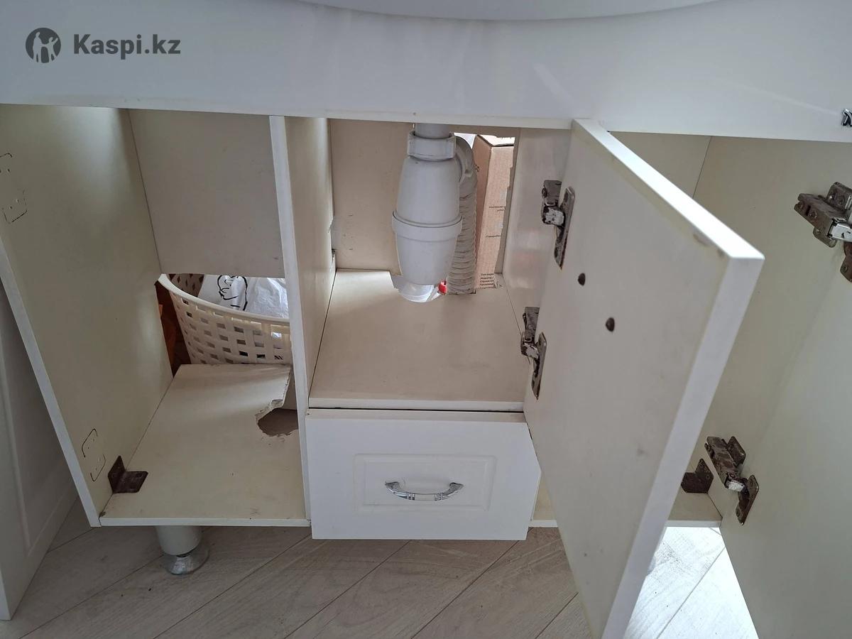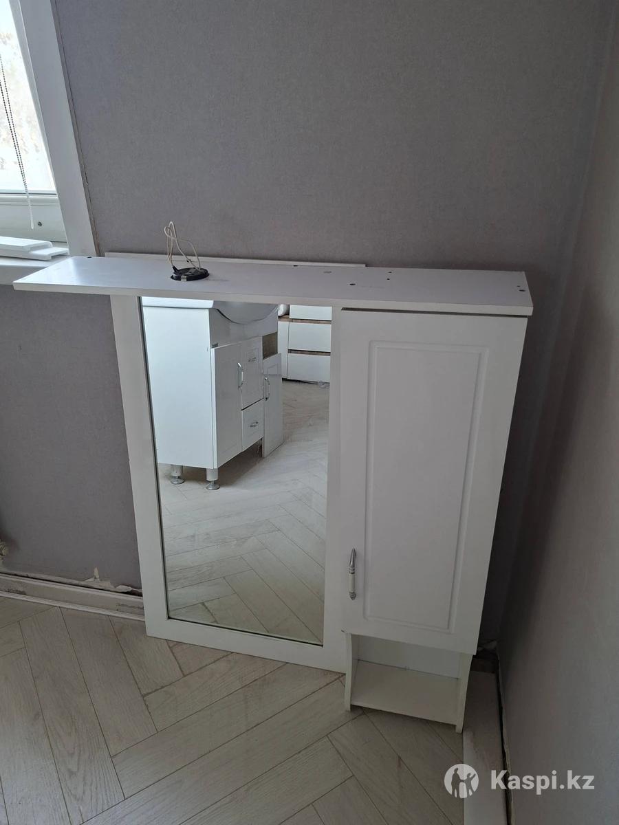 Продам б/у комплект мебели для ванны. Тумба с раковиной (ширина раковины 82см) +смеситель, шкаф подвесной и зеркало. Самовывоз. Район Жулдыз-1