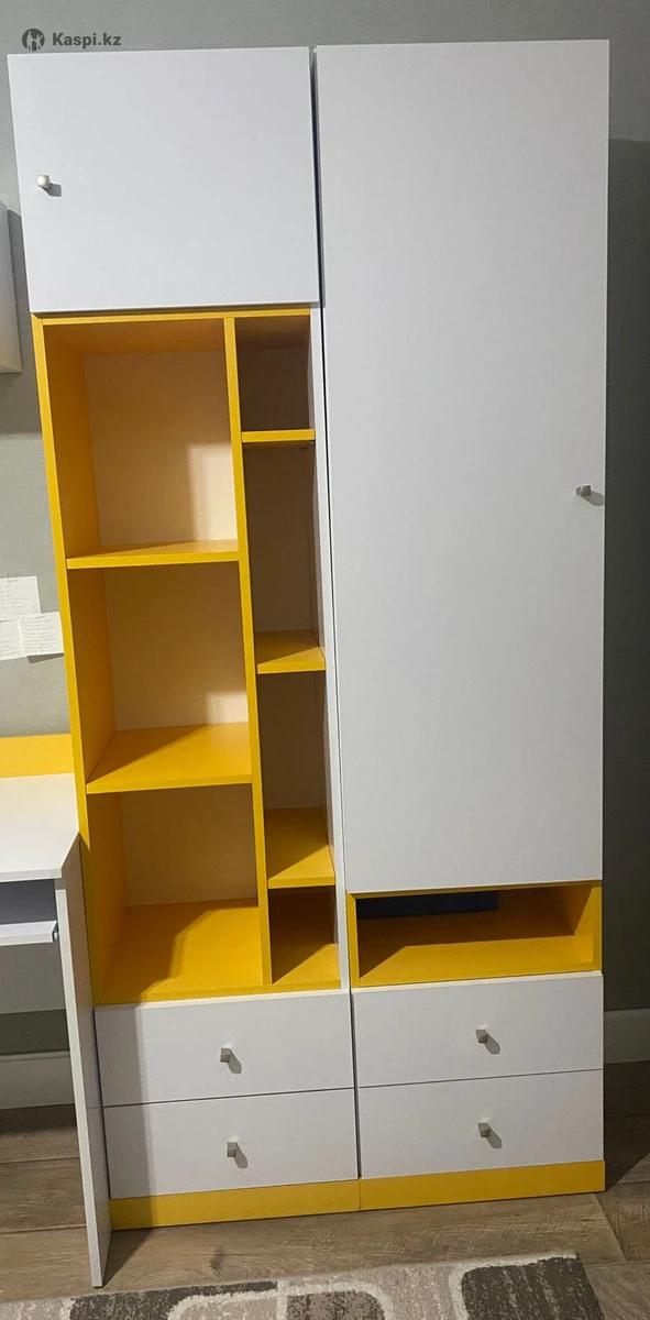 Продаётся мебель б/у в хорошем состоянии • Шкаф для одежды • Шкаф-пенал (один с открытыми полками, второй закрытый) • Рабочий стол • Навесная полка Мебель аккуратно использовалась, в хорошем состоянии.Есть незначительные изъяны (небольшие пятна, следы эксплуатации), почти незаметны и не мешают использованию. Отлично подойдёт для дома, детской/подростковой комнаты, съёмной квартиры или офиса. Покупалась почти за 400 000 тг Продаём за 200000 тг — выгодное предложение за весь комплект. Пишите, отвечу на вопросы. Возможен торг при быстром решении Мебель украинского производства