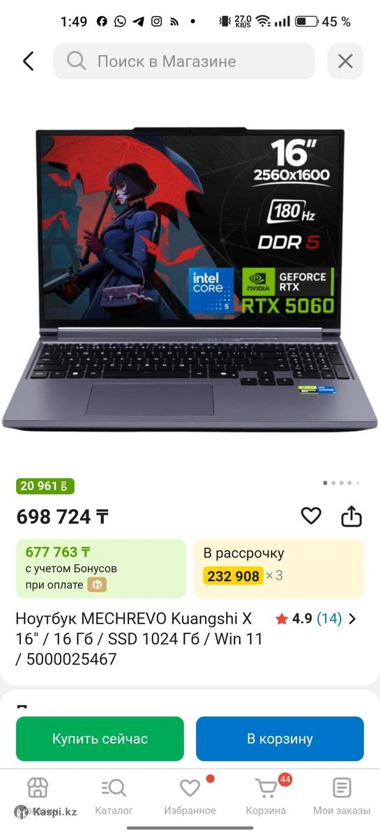 Mechrevo Kuangshi X16, i5 13500hx, 5060, 16gb ОЗУ, 180гц монитор 2к разрешение. Срочная продажа