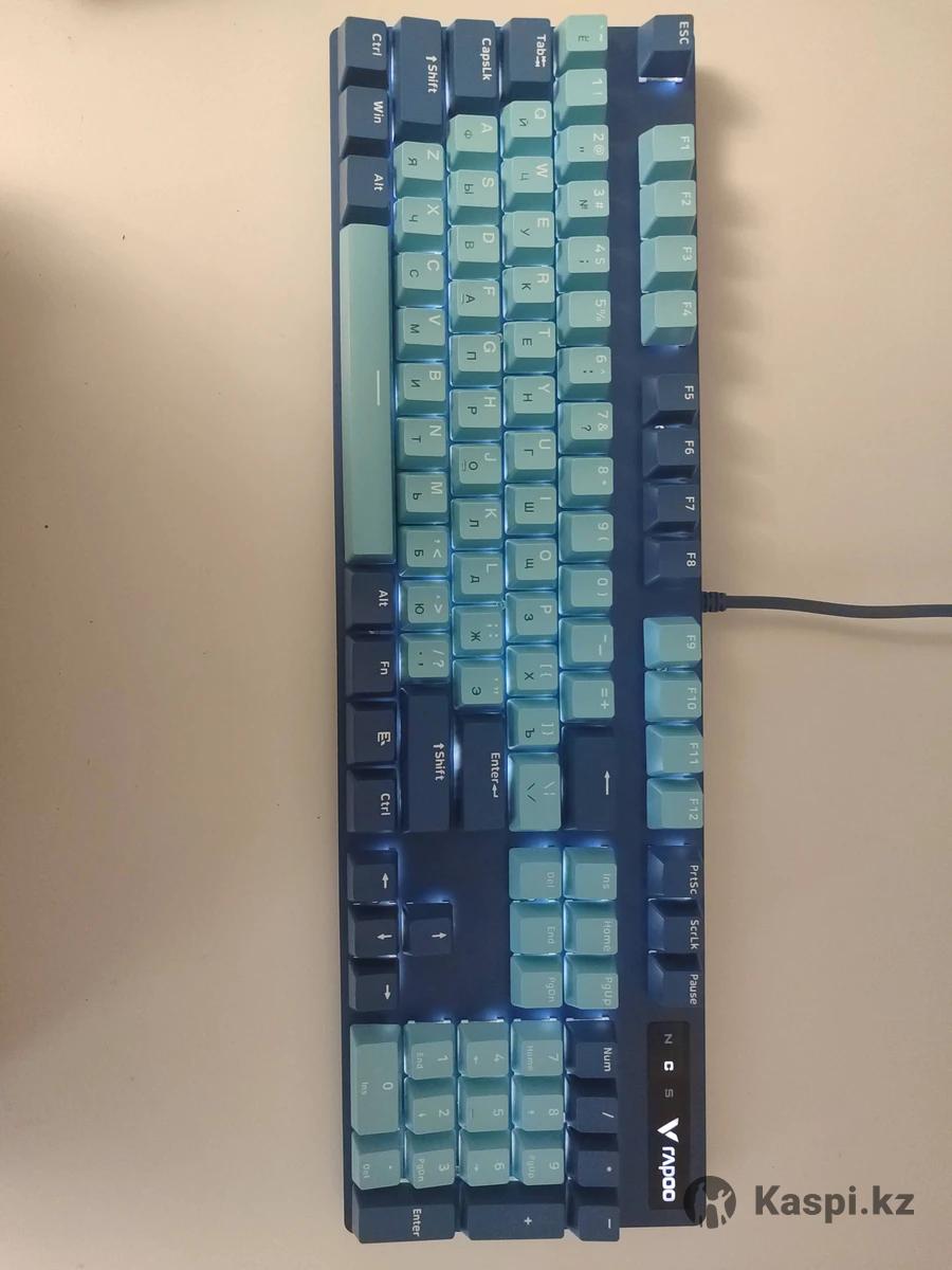 Rapoo V500 Pro механикалық клавиатура (көк түсті). Жағдайы жақсы, берік корпус, барлық пернелері жұмыс істейді. Ақ түсті жарығы бар (бірнеше түрі), ойынға да, күнделікті қолдануға да ыңғайлы. Қосылуы USB-C арқылы 6 ай бойы қолданылған, жаңа клавиатура ұтып алғанның кесірінен сатып отырмын