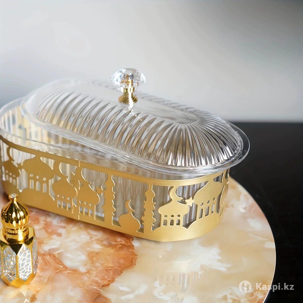 Менажница с крышкой для фиников и сладостей Стильная менажница с прозрачной крышкой — идеальна для хранения и красивой подачи фиников, сухофруктов и конфет. Защищает продукты от пыли и сохраняет свежесть.