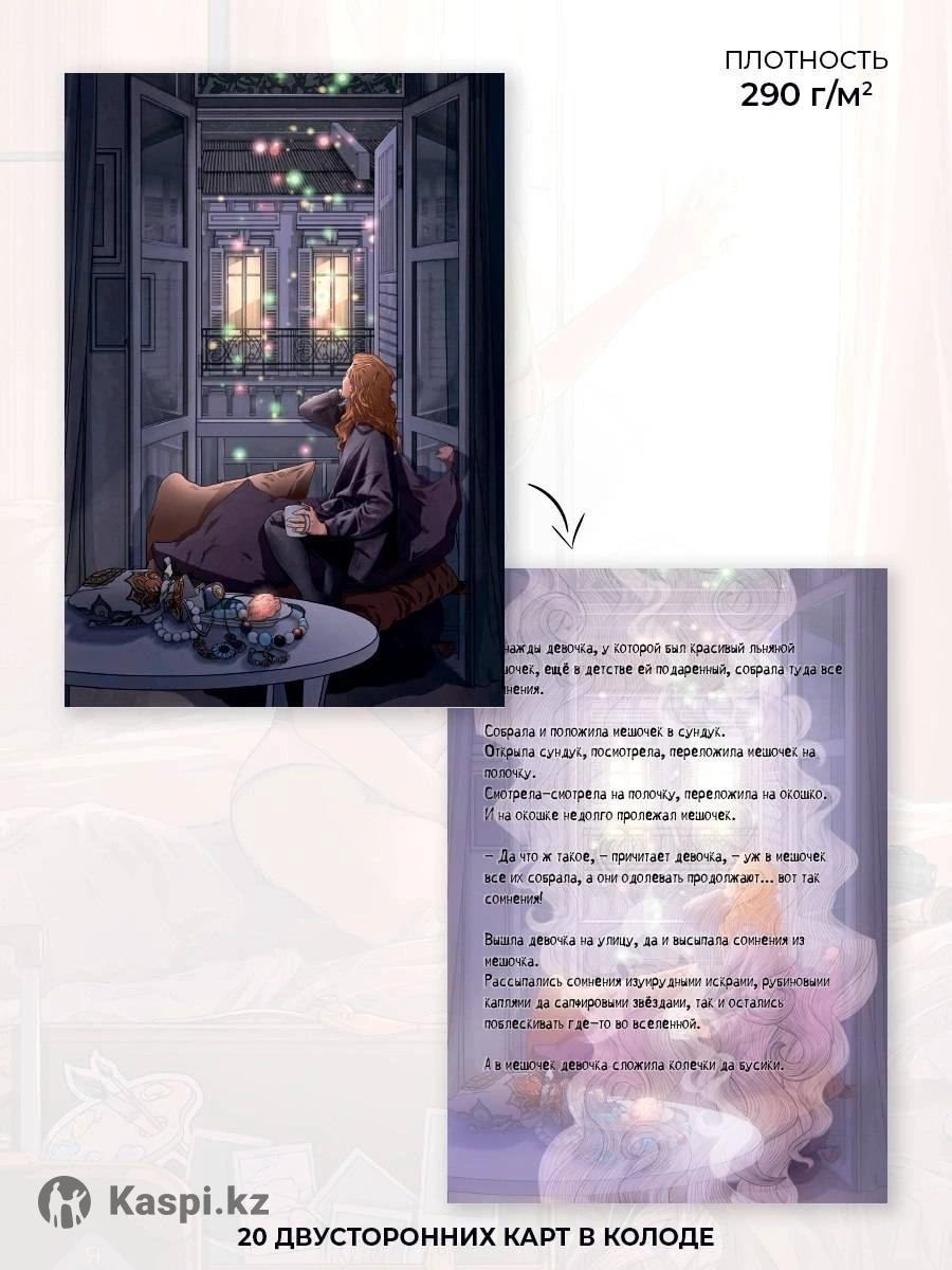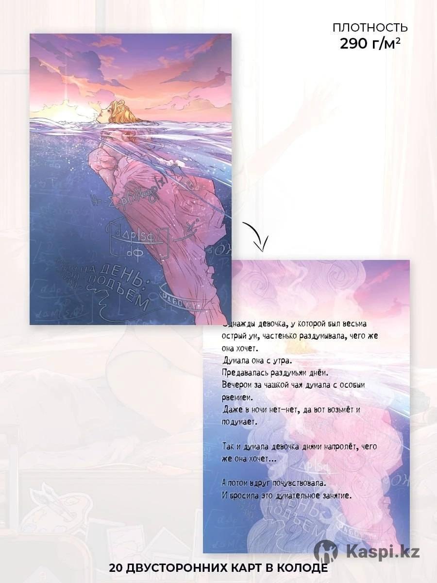Метафорические открытки для больших и маленьких девочек "Девочкины истории" В наборе содержатся 20 открыток, на каждой из которых вы найдете иллюстрацию и сказку. Самовывоз Караганда Возможна доставка в любой город и аул Казахстана за ваш счет Девочкины истории – это открытки с сюжетами, которые будут понятны каждой девочке, большой и маленькой. Простые, ироничные, заставляющие задуматься и посмеяться, истории о девочках приглашают заглянуть в глубокие смыслы, в сюжеты своих жизненных линий, в свои девчачьи сказки. Девочкины истории – это открытки, которые придутся по душе каждой. Кого-то зацепит сказка, кому-то приглянется образ, кто-то узнает в этих девчачьих историях себя. Открытки можно использовать: как самостоятельный инструмент в психологической работе с различными женскими запросами: о самоопределении, идентичности, качестве жизни, в теме отношений с людьми и с собои (отношения с телом, идеями, творчеством, целями, мечтами и тд.); в интеграции с другими метафорическими колодами; как дополнительный инструмент в работе специалиста в формате арт-терапии и сказкотерапии: создание творческого пространства, инсценировка сказок как возможность проживания и отреагирования различных ситуаций, написание продолжения сказок в рамках работы с жизненными сценариями и изменениями привычных установок; как пространство самопознания: использовать открытки в дневниковых записях, вытягивать каждый день образ в формате «ресурсная карта дня» или «послание на день»; как подарок всем девочкам: дарить наборы женщинам на девичниках, на женских мероприятиях, ретритах и тд. Обращаясь к открыткам, вы можете исследовать метафору образа и сказки. В этом вам помогут вопросы: - О чем рассказывает вам эта история? - О чем говорит образ на карте? - Какие мысли, чувства, ассоциации вызывает? - О чем напоминает вам история и/или картинка? - Какой смысл в себе таит? - Что происходит на карте? - О чем думает персонаж? - Что чувствует? Что делает? - Какой предстает перед вами девушка из истории/с картинки? - Каков ее характер? - Каковы ее ресурсы? Стремления? Желания? Таланты?