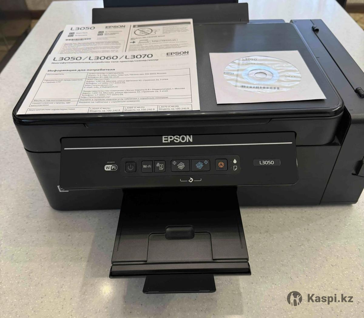 МФУ Epson L3050 цветной в отличном состоянии и полном комплекте. Технология печати - пьезоэлектрическая струйная. Использовался в домашних условиях очень аккуратно.