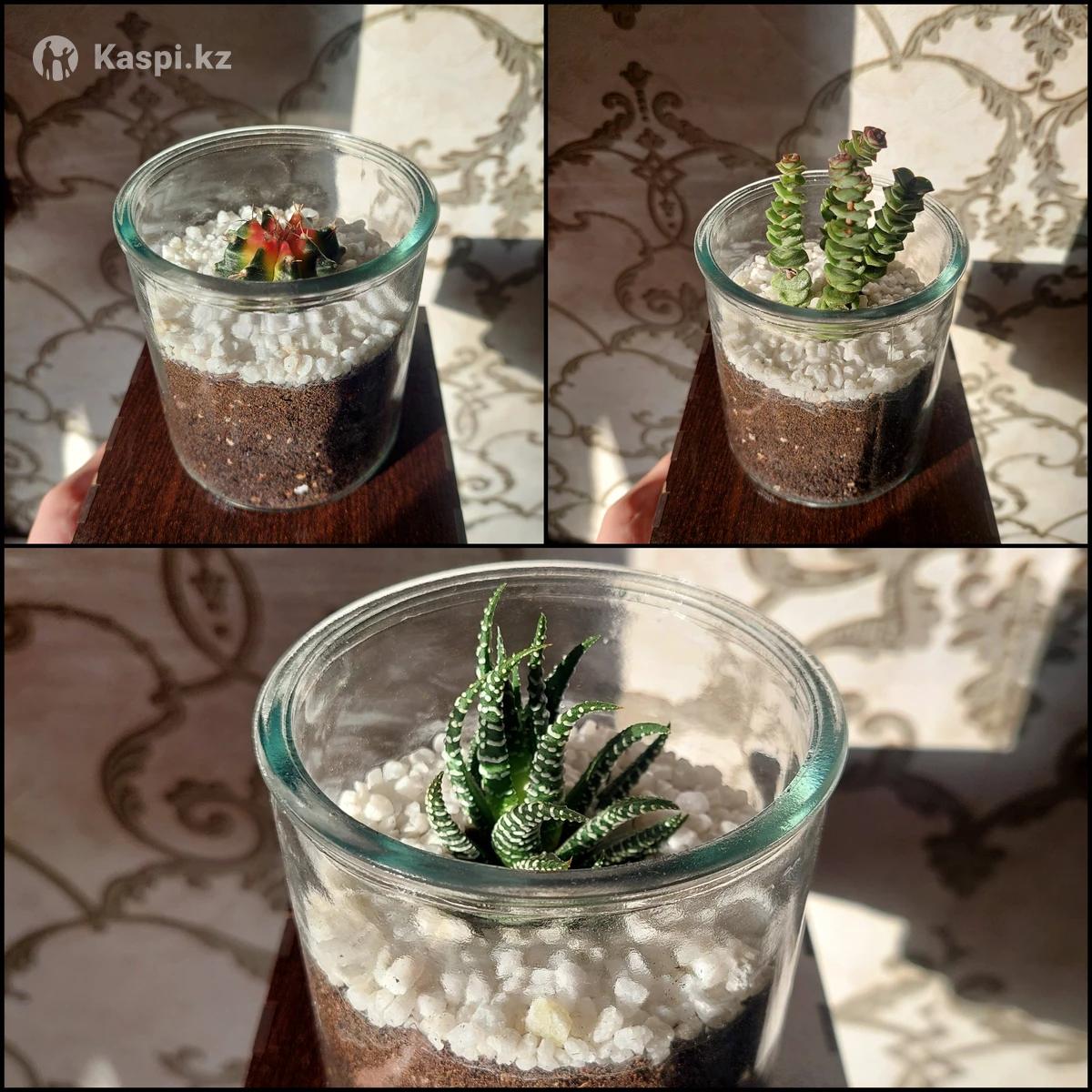 Продаю 3 вида мини-кактусов в стильных стеклянных стаканах. Каждое растение посажено в качественный грунт и сверху аккуратно присыпано белым декоративным камнем. Стекло толстое, прочное, красиво смотрится в интерьере. Особенности: - Неприхотливы, нужно поливать 1–2 раза в месяц - Идеальны для подарка - Можно купить поштучно или набором (будет дешевле) - Растения живые, здоровые По вопросам пишите на или звоните!