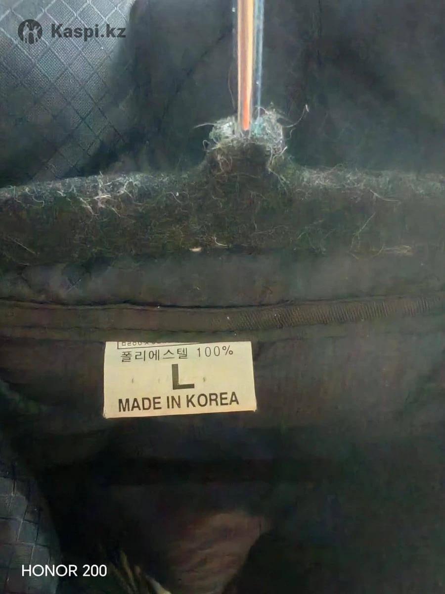 Куртка на тонком синтепоне. Размер указан L. Но скорее больше подойдет на S. Производство Корея.