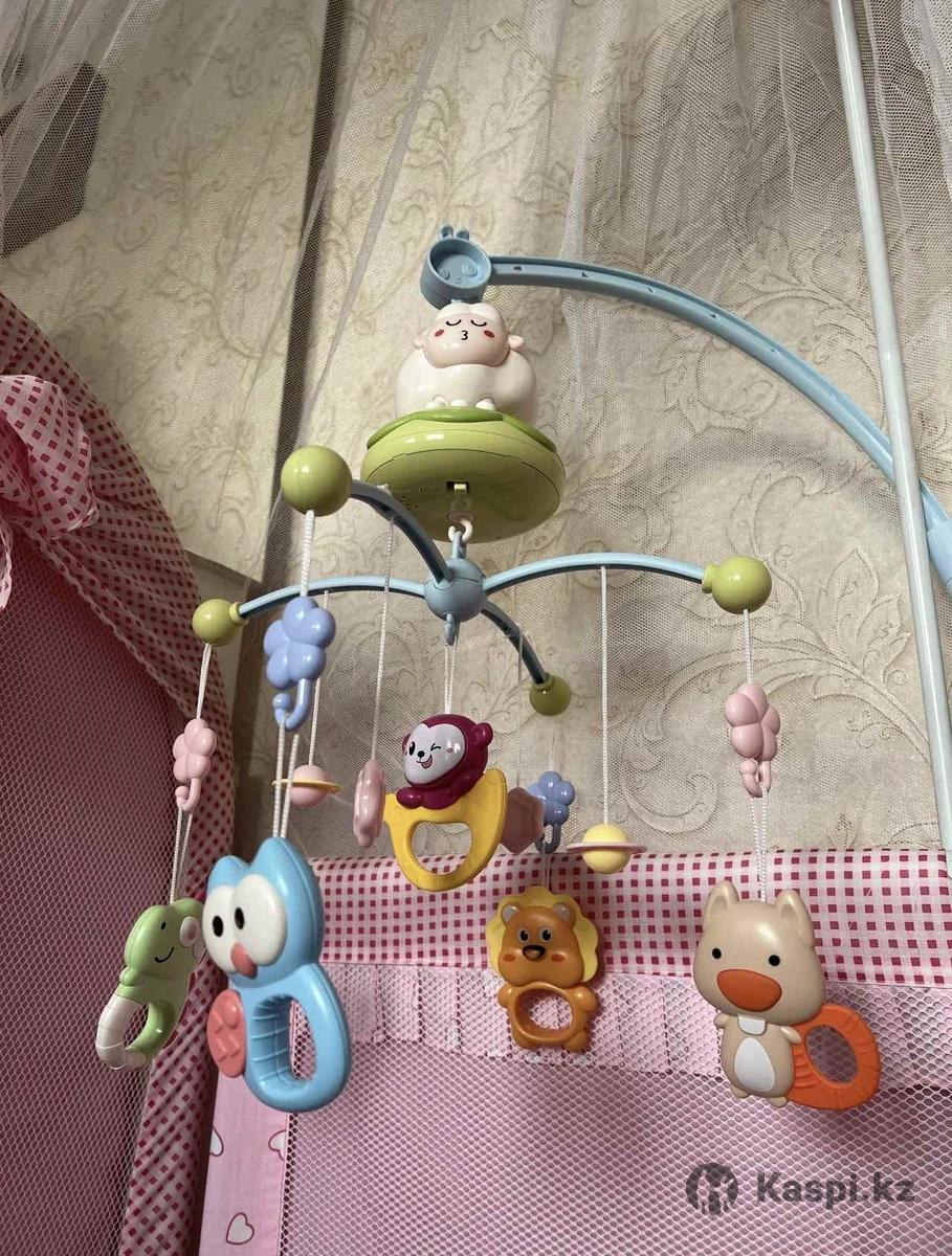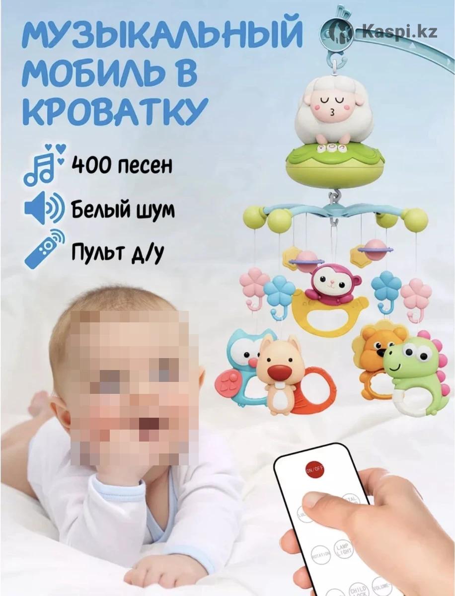 Детский мобиль в кроватку с пультом дистанционного управления и ночником. 400 песен, белый шум, звук потока воды, таймер 20/30/40/50. Прошу писать на W A