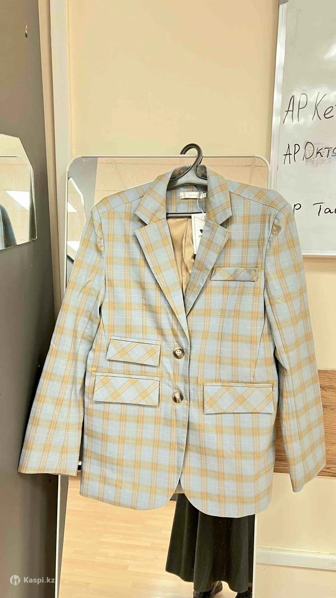 Продается новый пиджак в светло голубом оттенке в клетку. На подкладке. Новый. Размер М 44-46