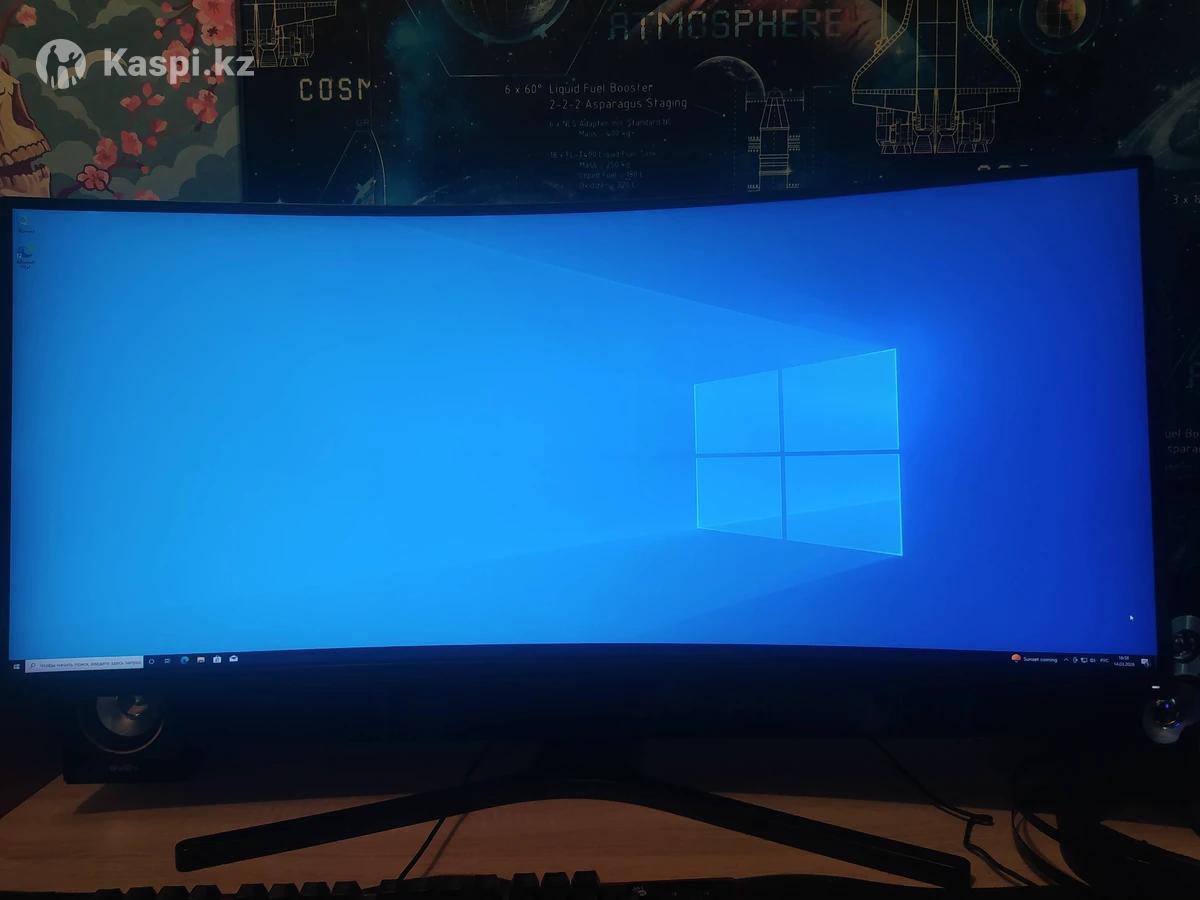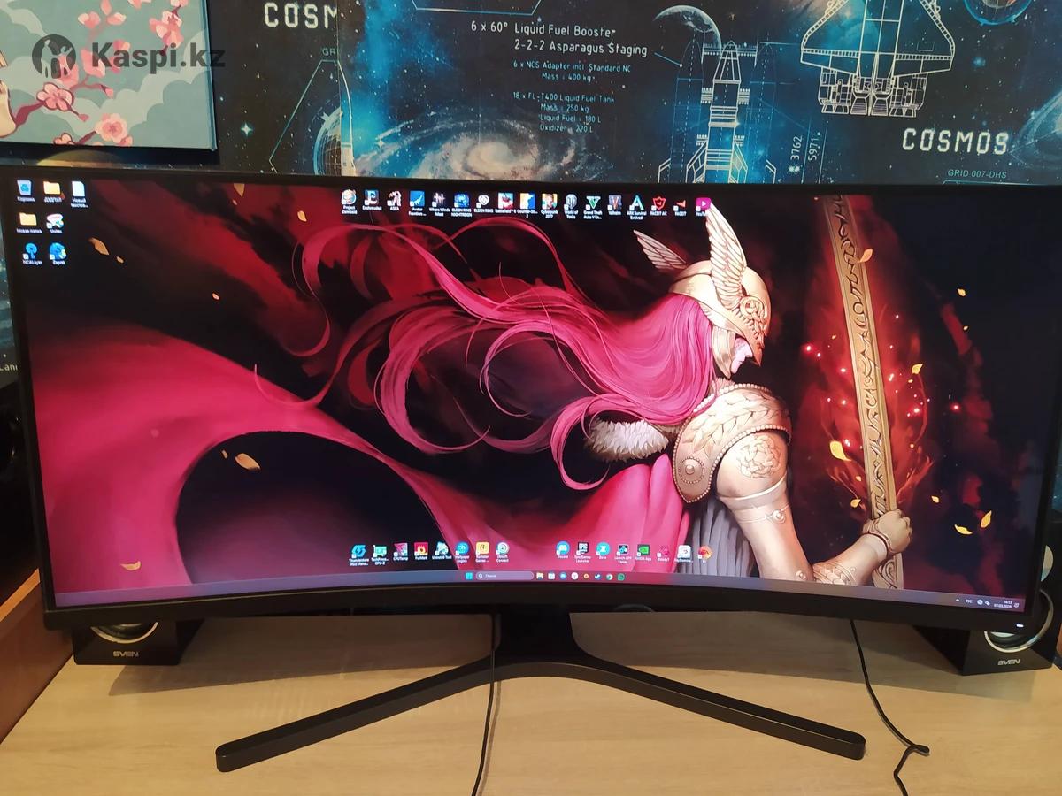 Монитор в хорошем состоянии 144грц с разрешением 3440-1440 скривлённый экран качество картинки красивое приятно смотреть