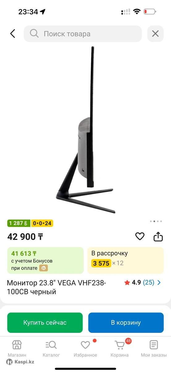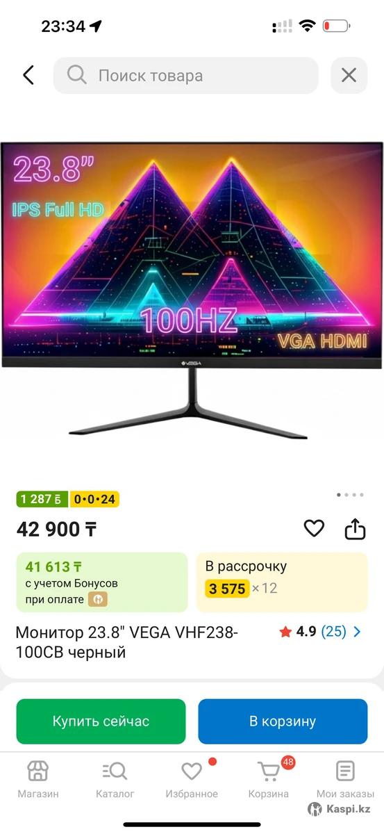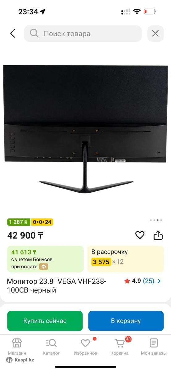 Монитор Vega, 23,8 дюймов, Ультратонкий, удобный и устойчивый Антибликовый - это идеально для снятия обзоров экрана в инстаграм👍 Вес 4 кг Коробка и документы имеются, почти не пользовались Шнур HDMI в комплекте Удобно для трансляции изображения с вашего ноутбука клиентам в офисе Самовывоз БЦ Коргалжын, район Казгюу