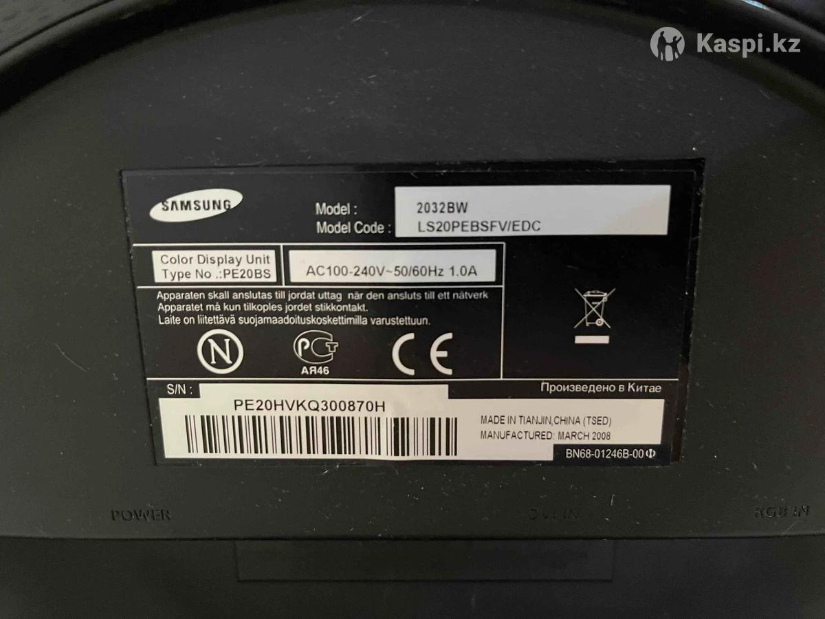 Продам бу ЖК монитор Samsung SyncMaster 2032BW, диагональ: 20 ", макс. разрешение: 1680x1050, частота 75 Гц, время отклика: 2 мс, соотношение сторон: 16:10, яркость: 300 кд/м2, интерфейсы видео: вход VGA, вход DVI-D.
