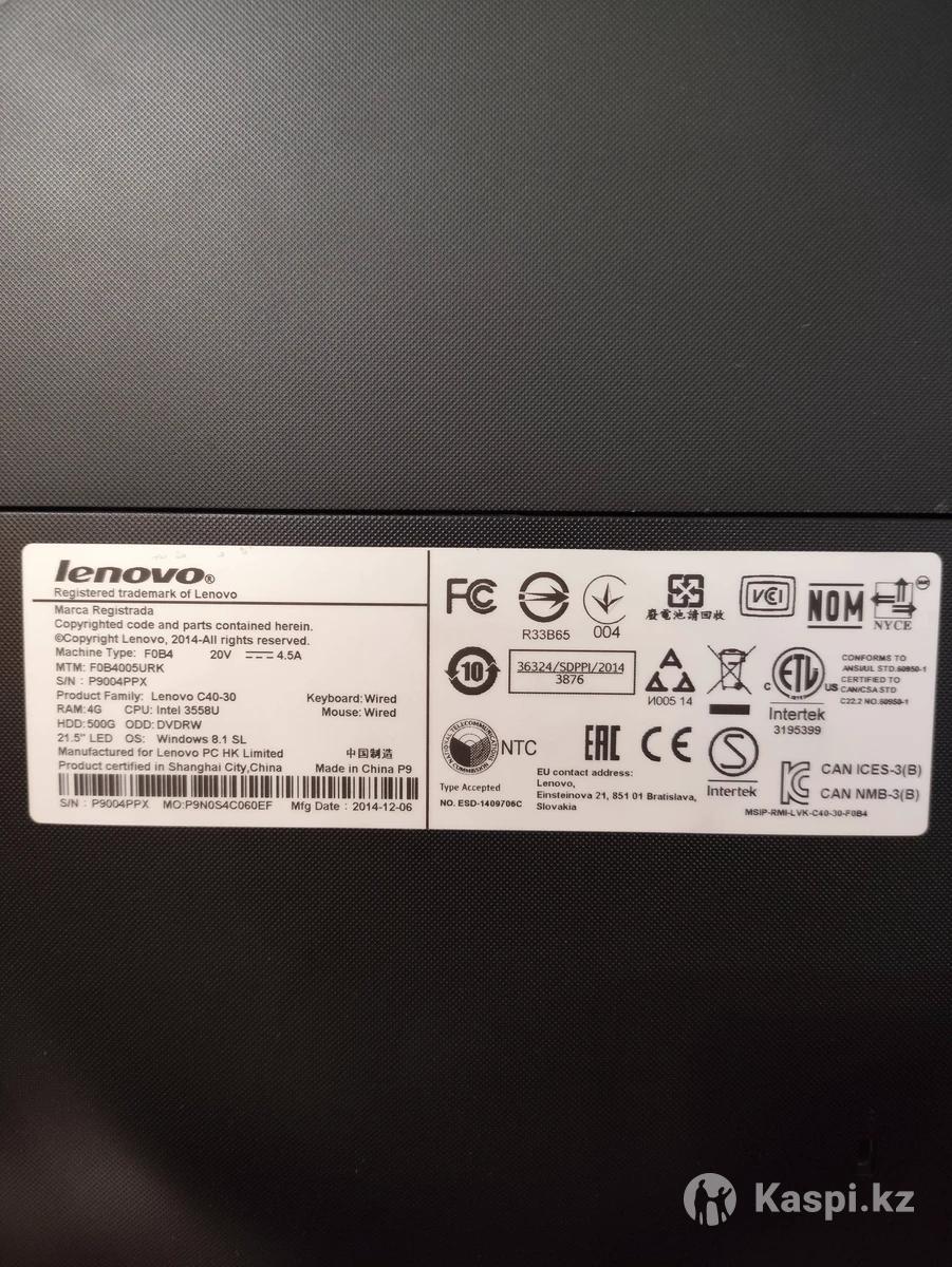 Продается 21.5" Моноблок Lenovo C40-30 (FHD) Intel Pentium CPU 3558U/4Gb/500hdd/Wi-Fi/DVD-RW/Win10HD. В отличном состоянии, использовался минимально. В комплекте клавиатура, мышь и блок питания.