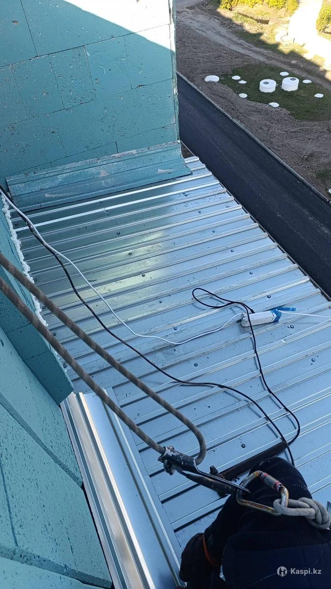 Монтаж козырьков над балконами. Деревянный каркас обшивается профлистом что позволяет избежать проблем с протечками внутри балкона.
