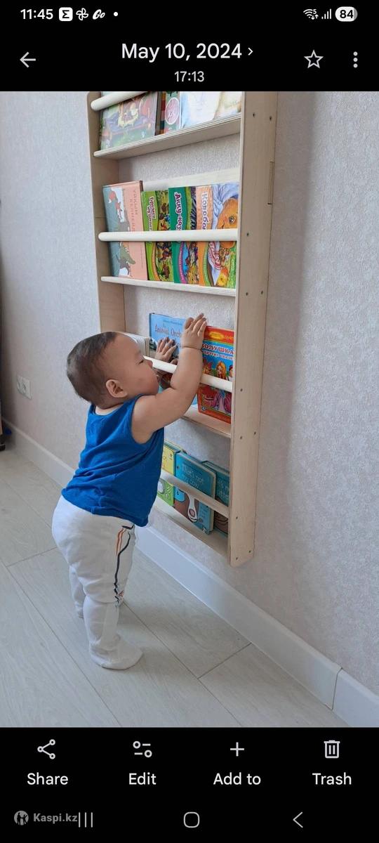 Настенная книжная полка Монтессори, много места не занимает. Для неравнодушных родителей, которые уделяют особое внимание книжкам и развивают своих детей с помощью книг.