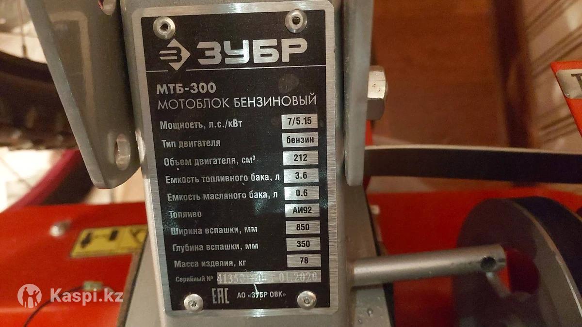 Мотоблок Зубр МТБ-300 комплект, отработал 3 сезона, все рабочее, отсутствует тумблер зажигания, глубина вспашки 35 см.