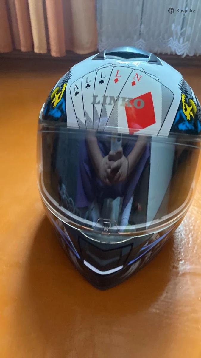 🏍 Мотошлем LINKO ALL IN (размер L) Закрытый мотошлем интеграл, стильный дизайн — карты и орел. Размер L, визор прозрачный, вентиляция сверху и снизу, подкладка мягкая и съемная. Состояние отличное, без трещин и сколов.