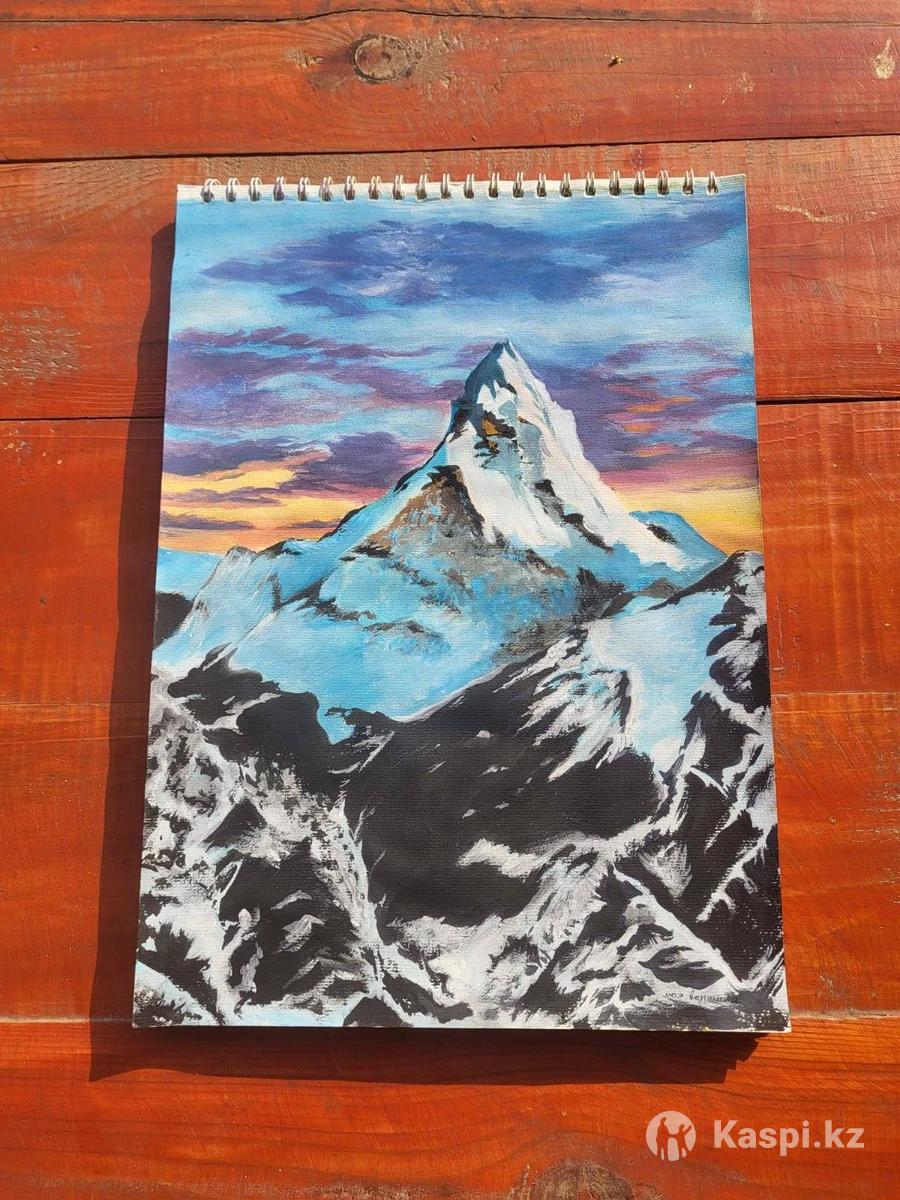 Авторская картина "Сила Гор" Гуашью, бумага, A3. Эта картина передает величие и спокойствие горных вершин. Снежные пики, вечернее небо, пробуждающее вдохновение и ощущение свободы. Подходит для интерьера, офиса или в подарок темнато ценит природу и силу духа. Цена: 7000тг Упакую с любовью🥰✨✨✨❤️❤️❤️Доставка возможна