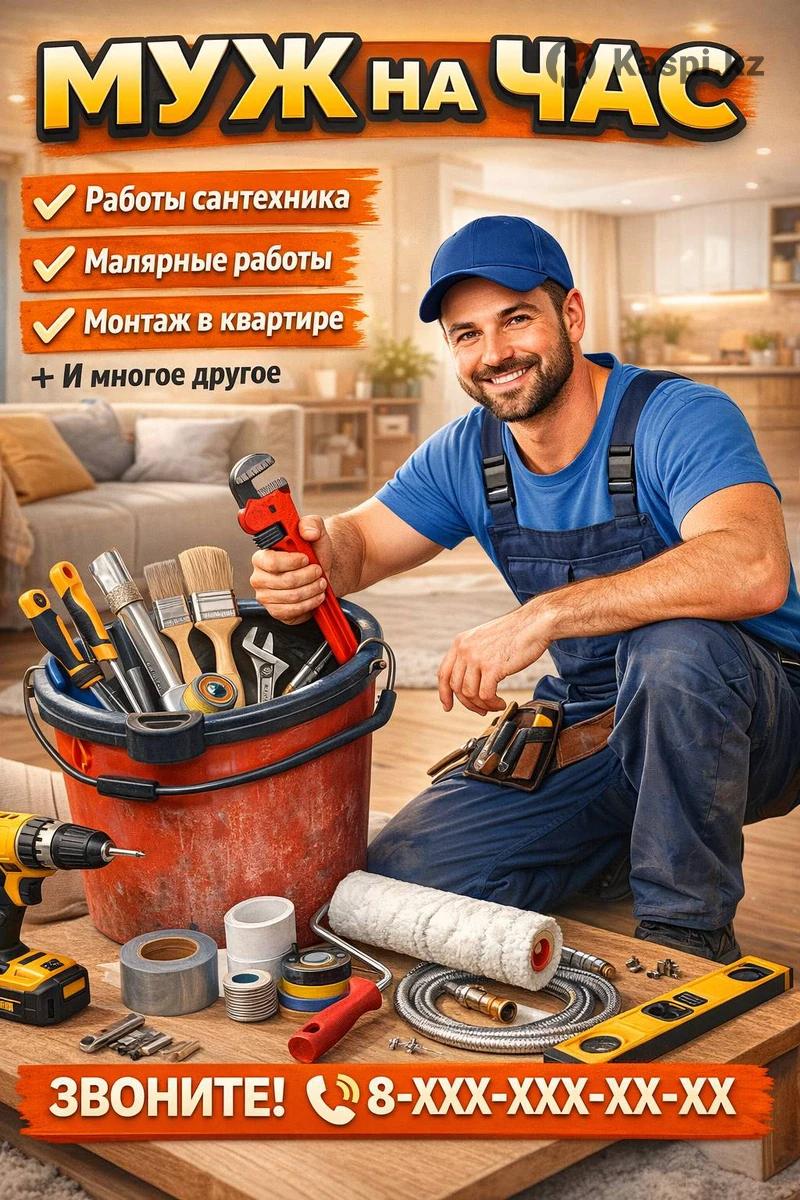 МУЖ НА ЧАС — быстро, качественно и по доступной цене! Выполним любые бытовые и ремонтные работы в квартире: Сантехнические работы Малярные и отделочные работы Монтаж и мелкий ремонт Сборка и установка мебели И многое другое Приезжаем вовремя, работаем аккуратно и оставляем после себя порядок. Поможем решить любые домашние задачи без лишних хлопот! Звоните прямо сейчас и заказывайте удобное время выезда мастера.